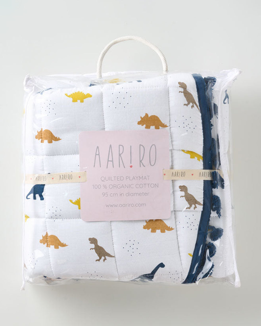 Aariro Little Dino Round Playmat-100% Organic Cotton-Hypoallergenic & Non-Toxic-0 to 6M