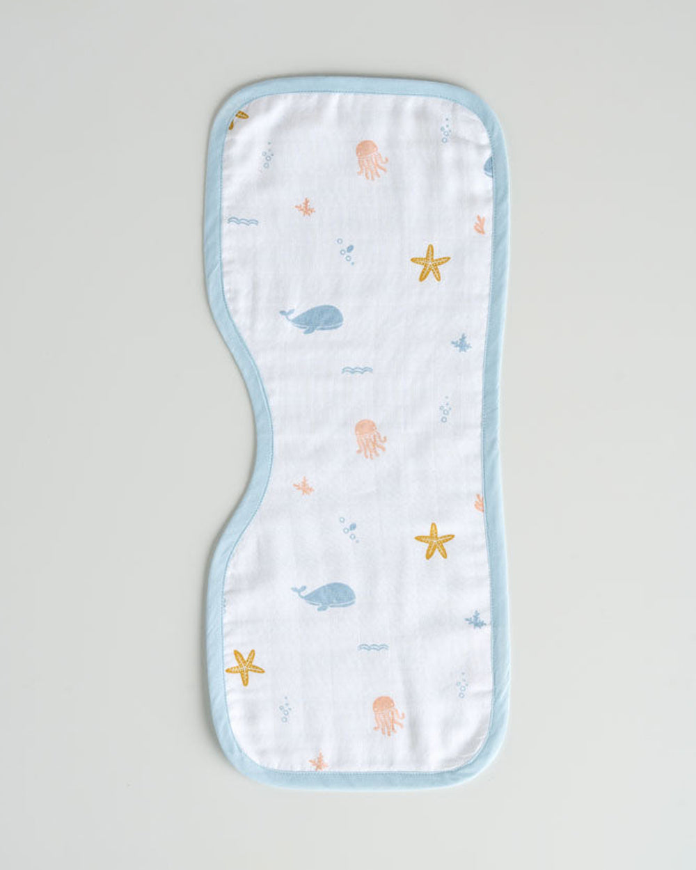 Aariro Organic Cotton Burp Cloth-Multi Layered & Reversible-Under The Sea-For Infants
