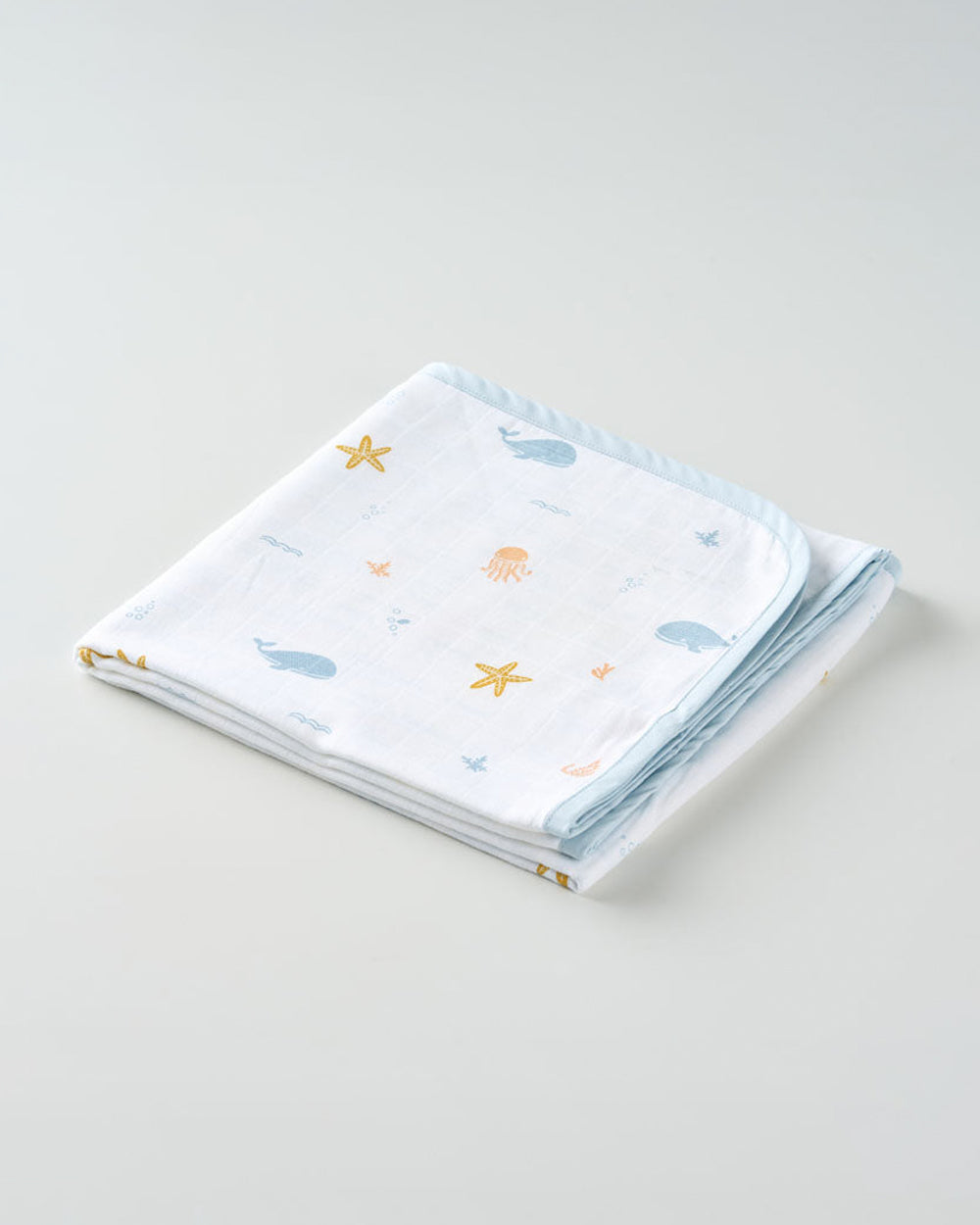 Aariro Reversible Muslin Blanket-Under The Sea-Organic Cotton-White & Light Blue-For Infants