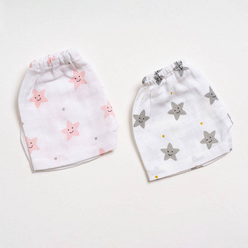 Aariro White Jhabla & Shorts Set-Star Print-Organic Cotton-Pack of 2-For Infants