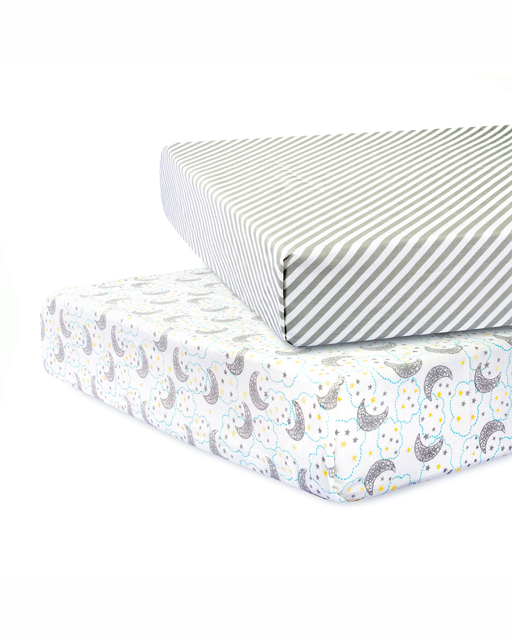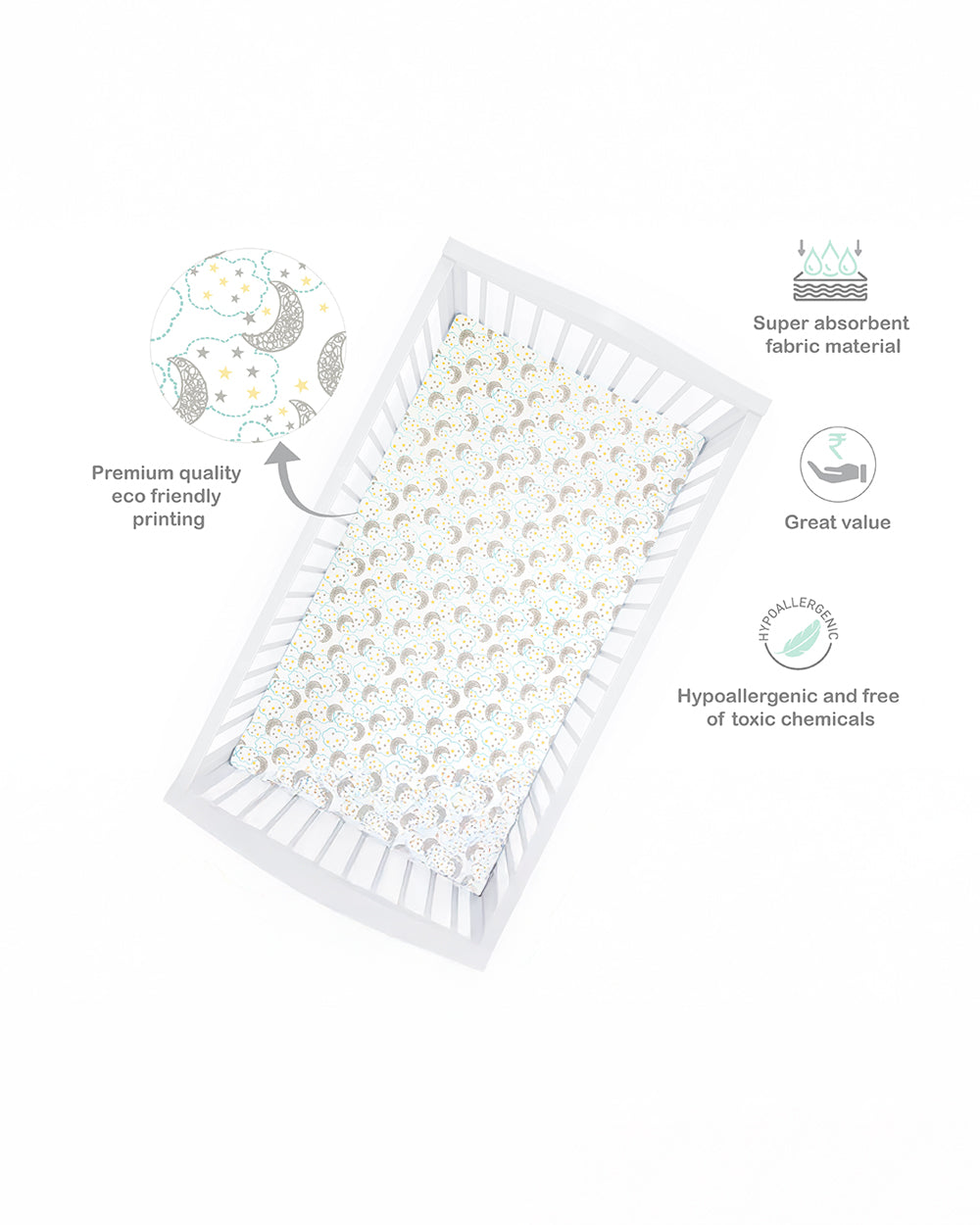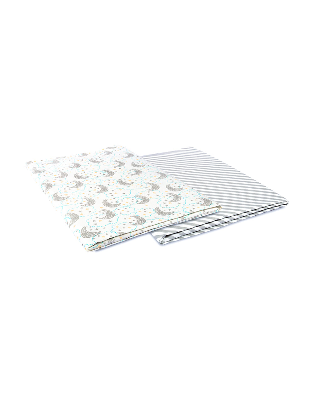 Abracadabra Flat Bedsheet-Starry Night-100% Natural Premium Cotton-Grey & White-Pack of 2 Baby Bedsheets-For Infants