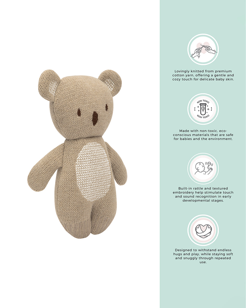Abracadabra Milo The Teddy Knitted Rattle Toy-Breathable & Lightweight-Soft Toy-Brown-For Newborn