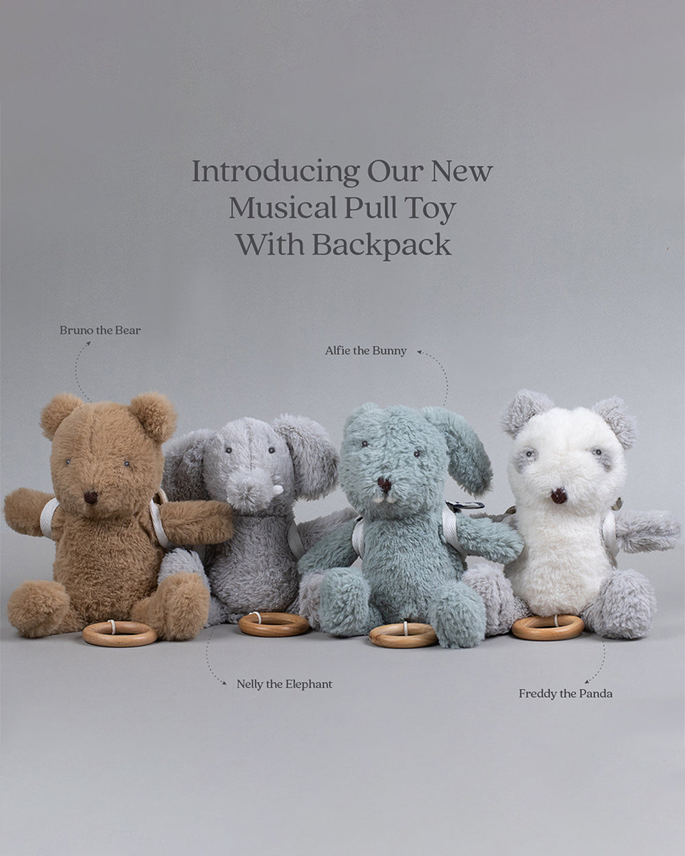 Meet Nelly the Elephant – a lovable plush companion designed to comfort and stimulate your baby’s senses. With soft, baby-safe fabrics and a gentle pull-string music box, Nelly plays a soothing melody to help lull your little one into restful sleep or peaceful playtime. The charming mini backpack adds a fun and whimsical element, making Nelly a favourite for both babies and parents. Crafted with high-quality, non-toxic materials, it’s the perfect gift for nurseries, baby showers, or everyday snuggles.