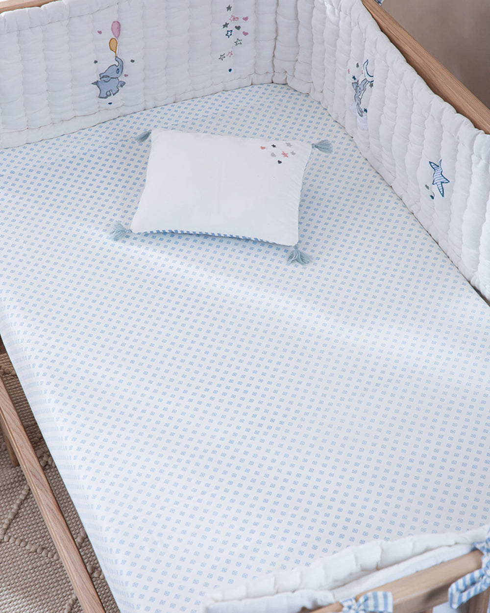 Aplito Baby Bedding Set-Little Tuskers-Patchwork-100% Organic Cambric Cotton-White & Light Blue-For Infants