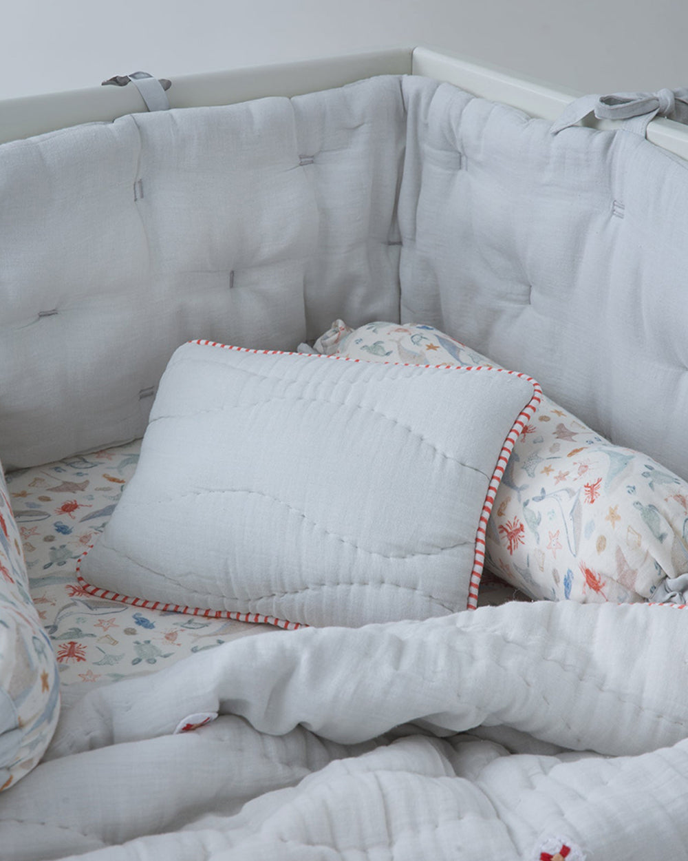 Aplito Baby Bedding Set-Turtle Tales-Hand Embroidered-100% Organic Muslin Cotton-White-For Infants