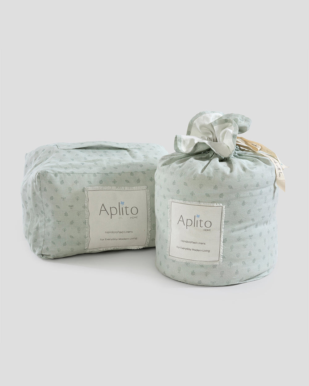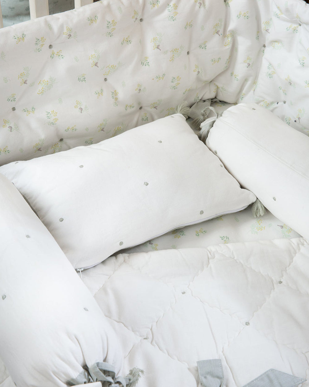 Aplito Baby Cot Bumper-Bows and Greens-100% Organic Poplin Cotton-White-For Infants