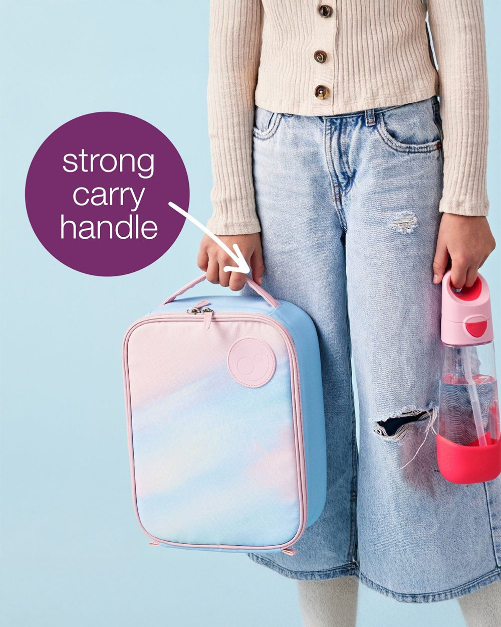 Customise your lunch combinations and keep food cooler for longer with our new flexi insulated lunchbag. Built with flexible sides to fit a variety of b.box lunch gear combos, it’s the ultimate solution for lunches on the go. Made from 100% recycled polyester with a tough aluminium lining, it’s fully machine washable for easy cleaning. Pair it with our jumbo gel cooler (sold separately) for extra cooling power on hot days.