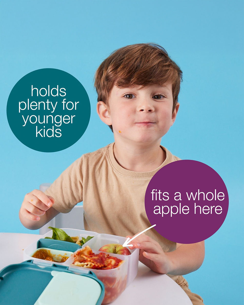 Compact yet spacious, the Mini Lunchbox is designed to pack healthy, whole food options with ease. It features a flexi fruit holder for storing whole fruits, and two leak-proof compartments for both wet and dry foods. With an adjustable divider and easy-clean design, it's ideal for on-the-go meals. Kid-friendly features like a carry handle and grip clip promote independence.