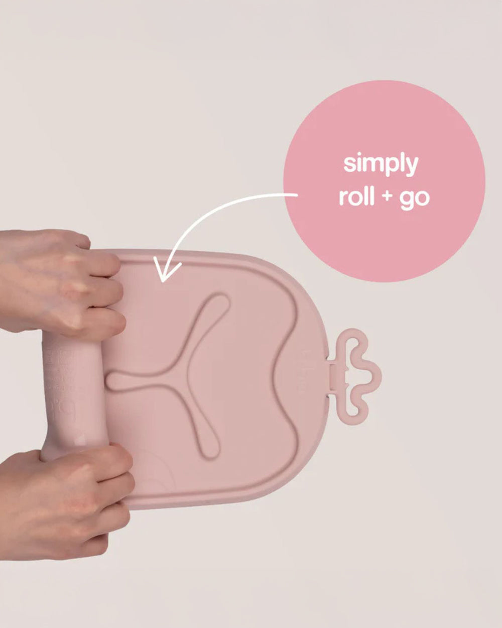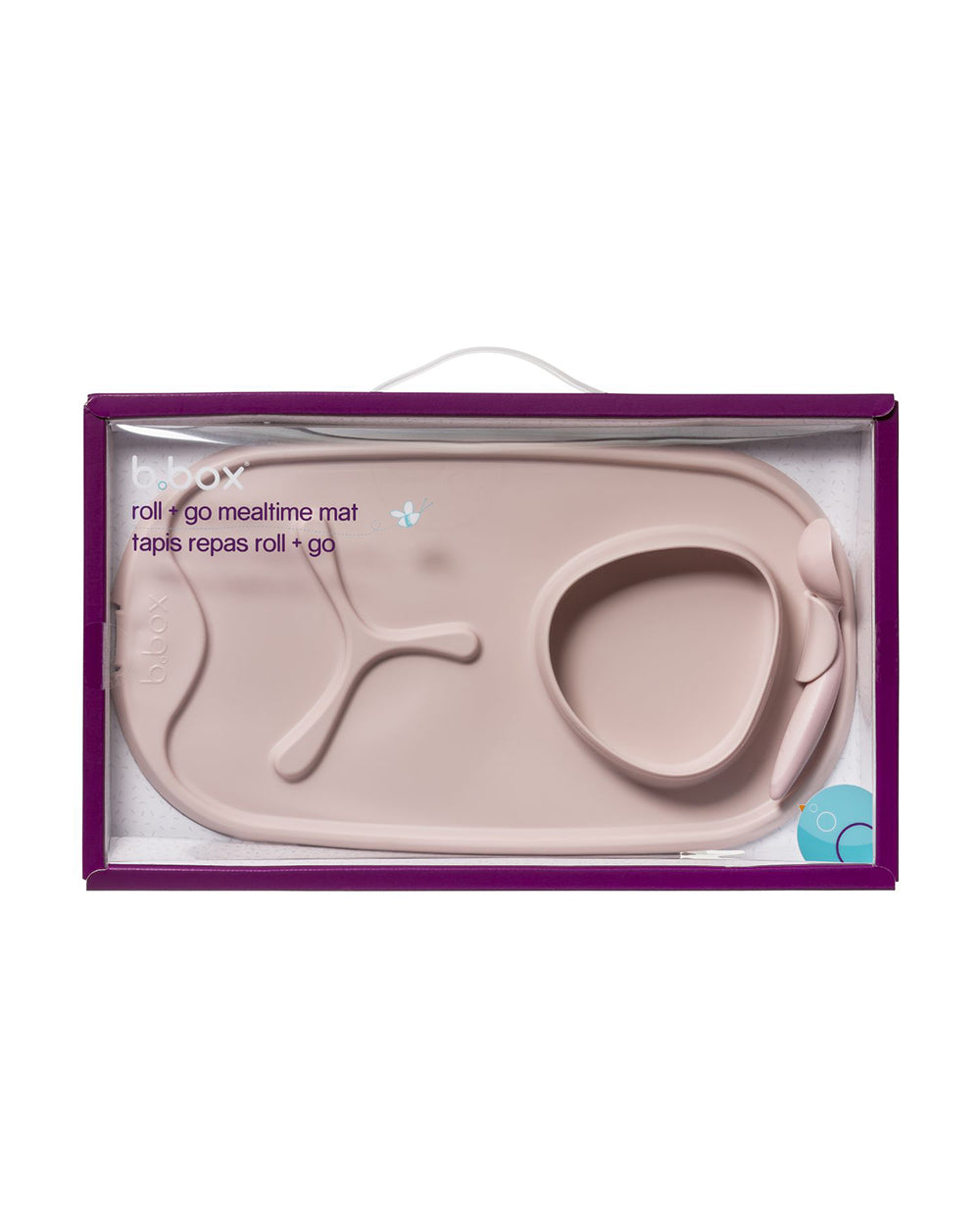 b.box Roll & Go Silicone Mat With Spoon-Meal Set-Three Section Divder-Suction Base-Travel Friendly-Blush Pink