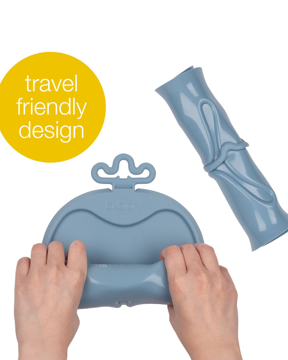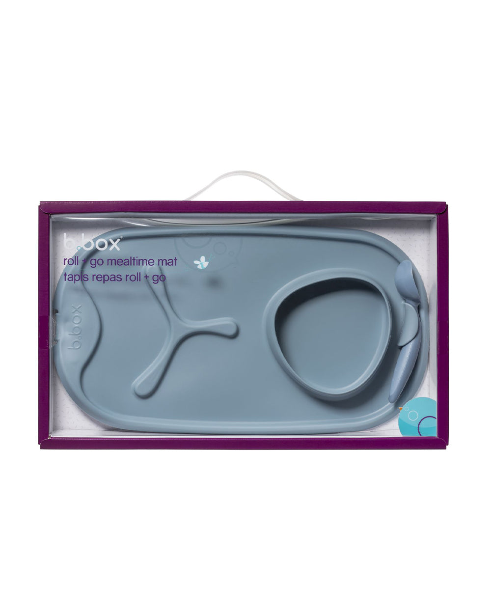 b.box Roll & Go Silicone Mat With Spoon-Meal Set-Three Section Divder-Suction Base-Travel Friendly-Ocean Blue