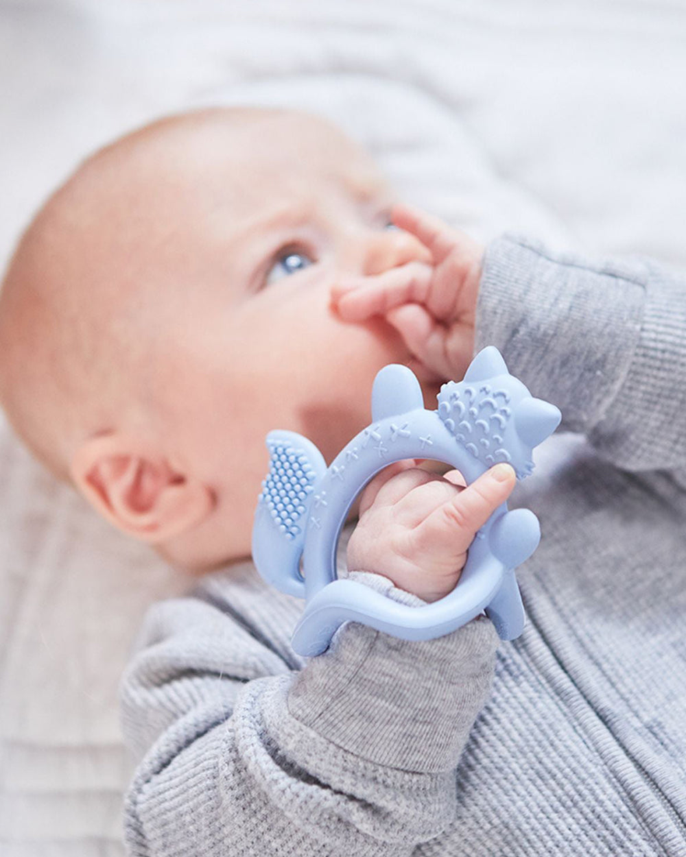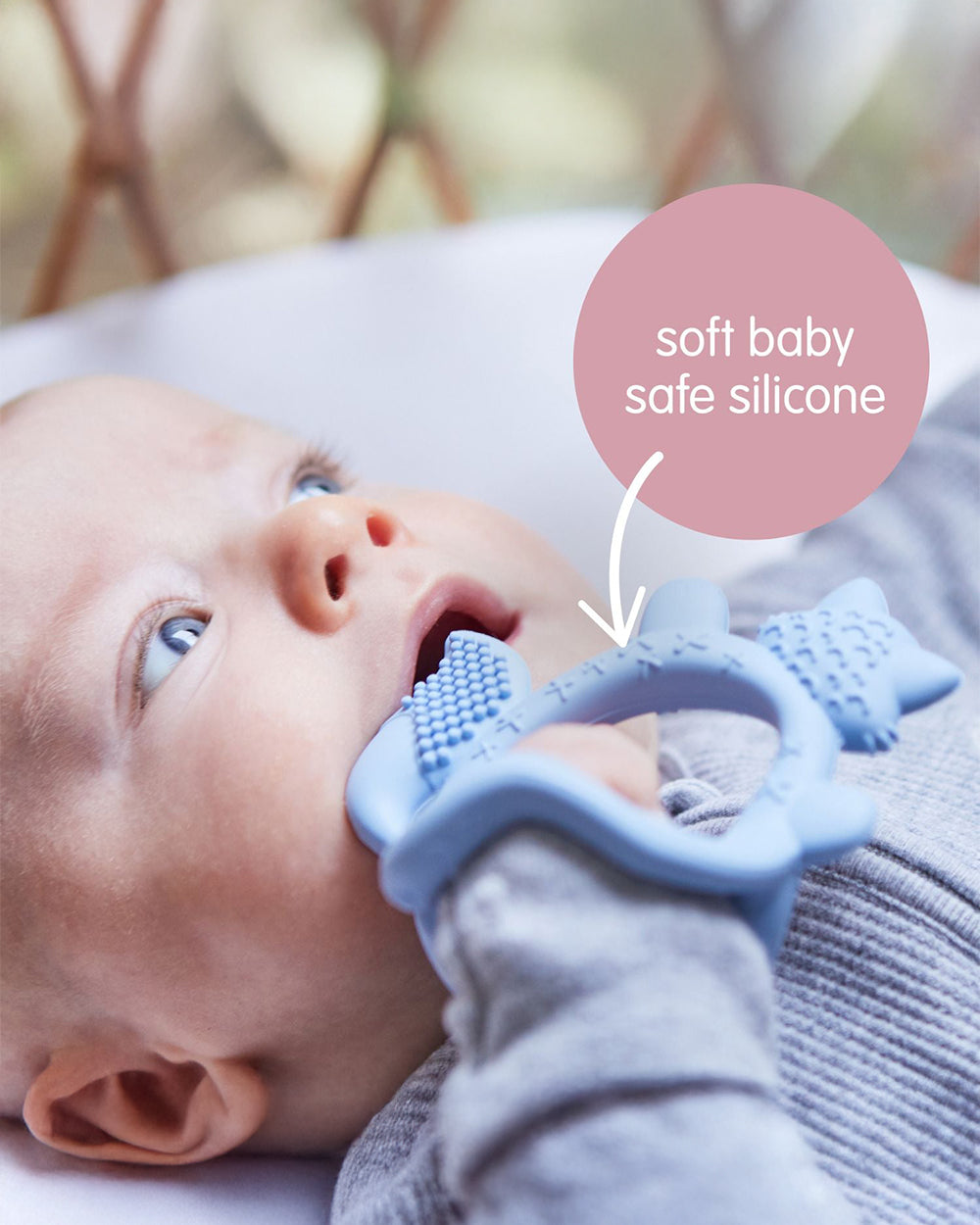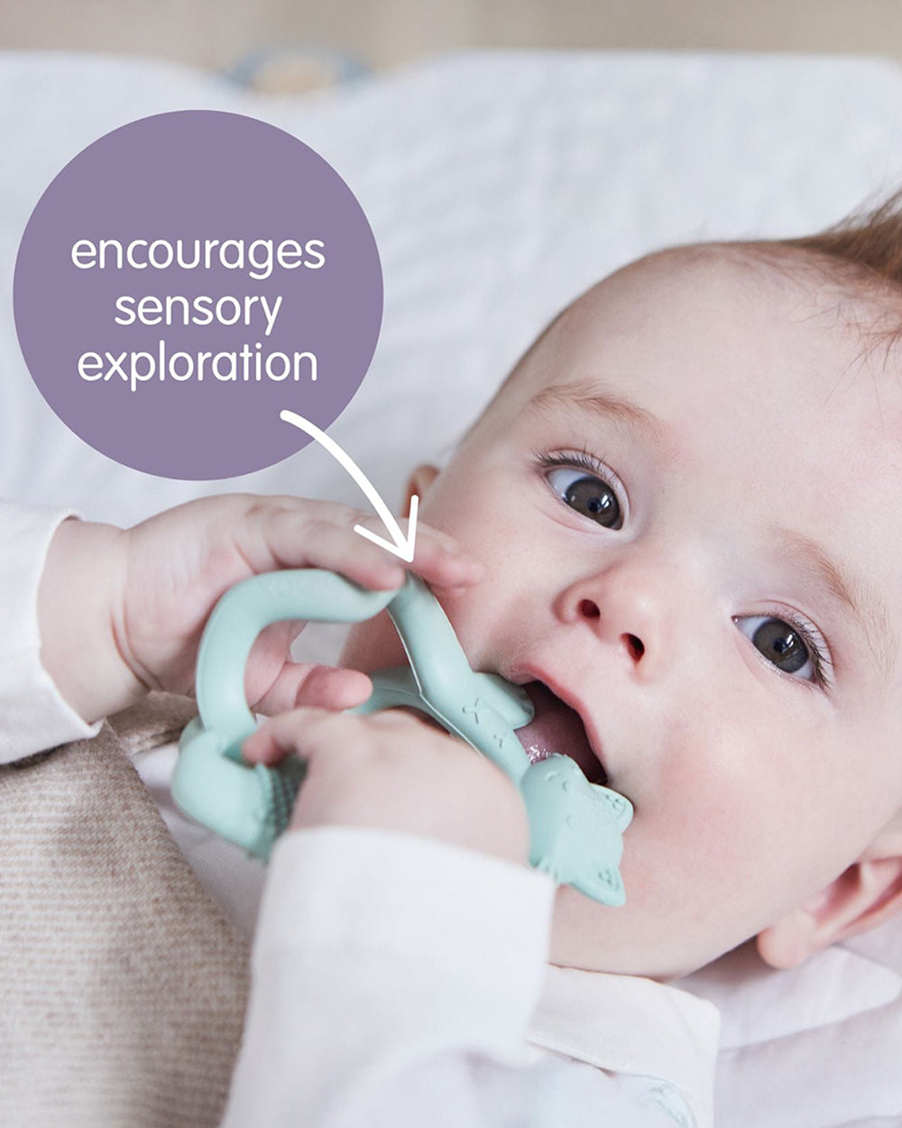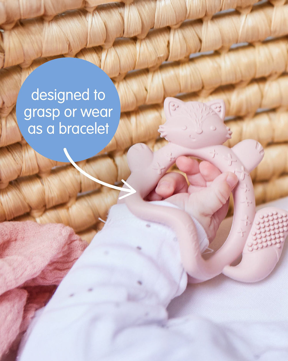 • Gentle Gum Massage: Varied textures on the little fox’s head, body, and tail help soothe sore and achy gums.