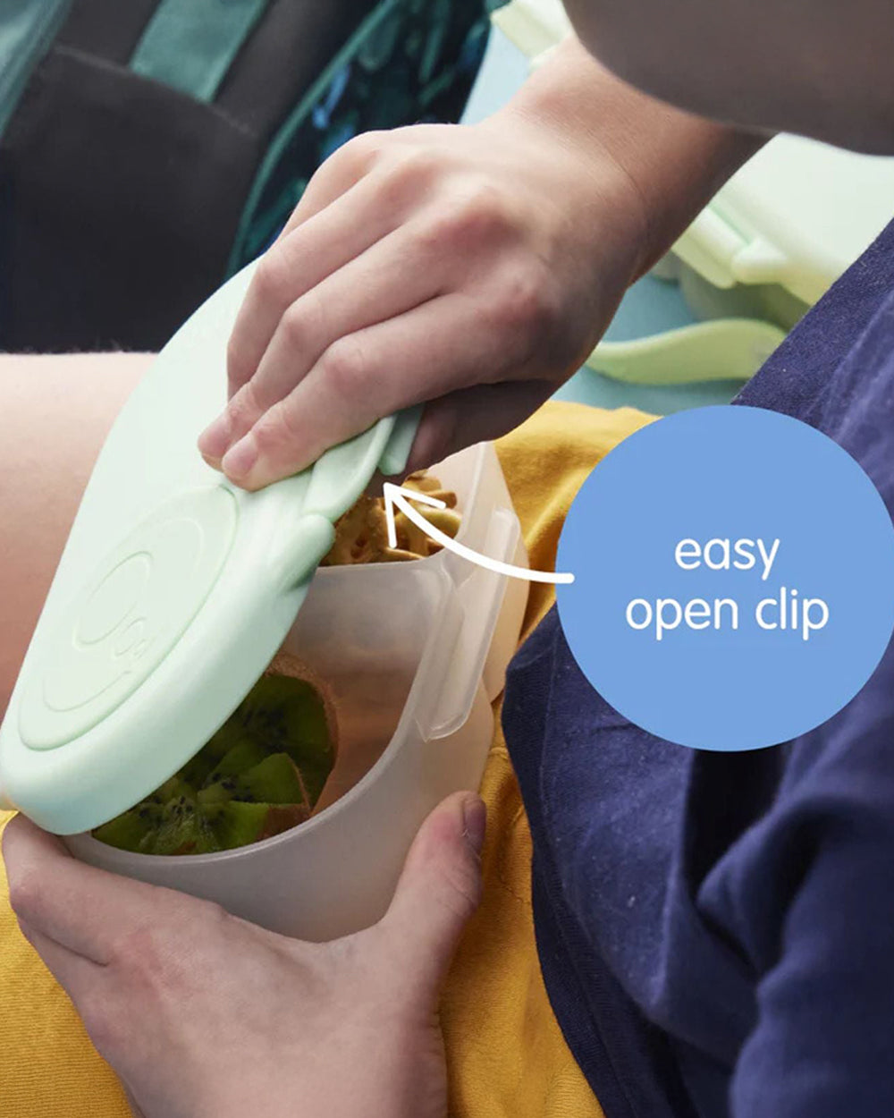 On-the-go? The versatile snack box makes snack time simple. Designed for smaller portions, it keeps little ones satisfied no matter what your day involves – whether it’s the playground, a car ride, or daycare. Featuring a flexible whole fruit holder that secures small fruits in place, say goodbye to soggy or bruised snacks. With leakproof compartments and an easy-to-use clip, this snack box is made for convenience and cleanliness.
