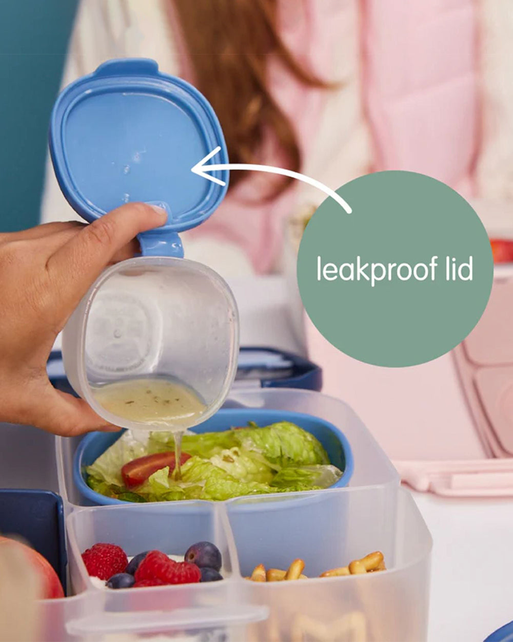 • Leakproof & Attached Flip-Top Lid: The hinged design keeps the lid connected to the tub & silicone seal ensures mess-free storage for wet foods like yoghurt, dips, and sauces.