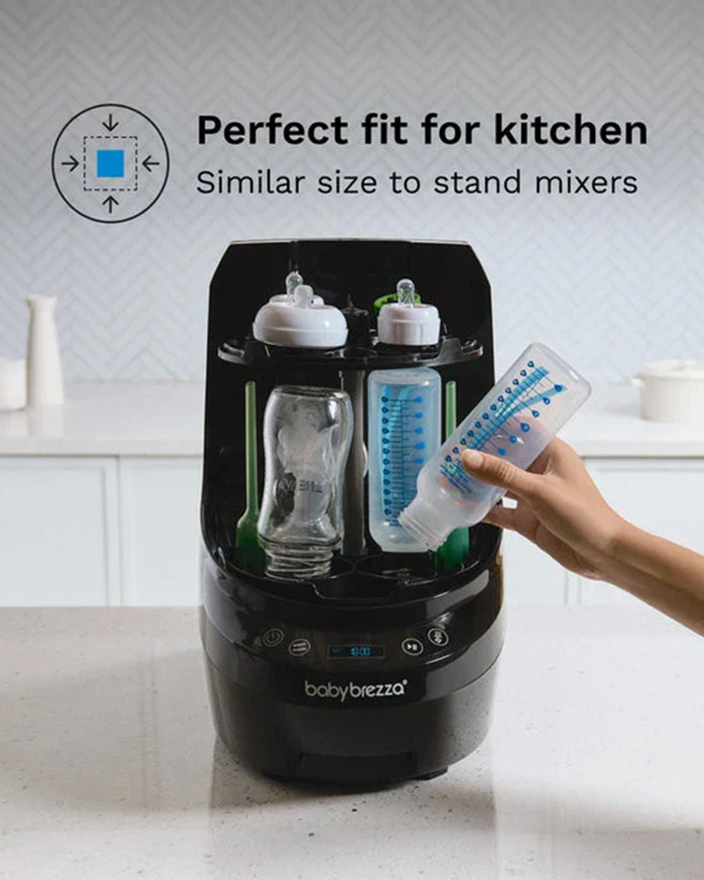 The Baby Brezza Bottle Washer Pro is the ultimate all-in-one solution that automatically washes, sterilizes, and dries baby bottles, pump parts, and accessories—so you never need a bottle brush or drying rack again! With powerful spray jets, steam sterilization, HEPA-filtered drying, and no plumbing required, it delivers spotless, germ-free results in minutes. Designed to fit up to 4 bottles and most pump parts, it’s the perfect time-saving, mess-free essential for every modern kitchen.