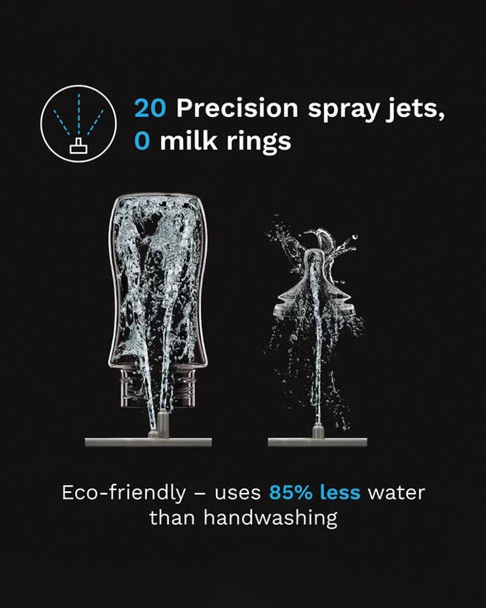 • Powerful Spray Cleaning: Equipped with 20 high-pressure water jets to remove milk residue for a deep, thorough wash.