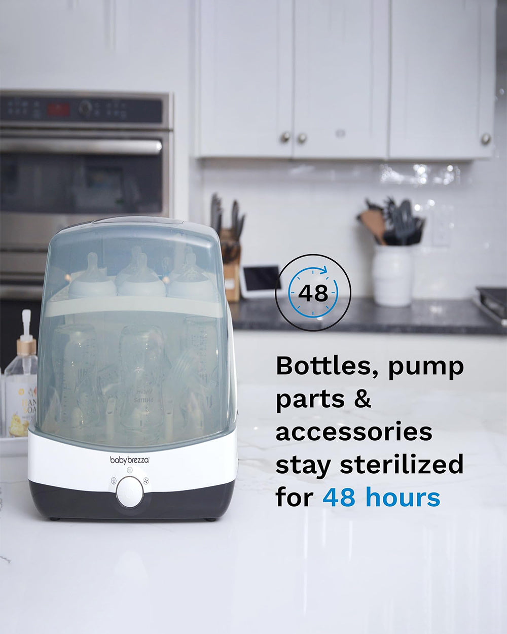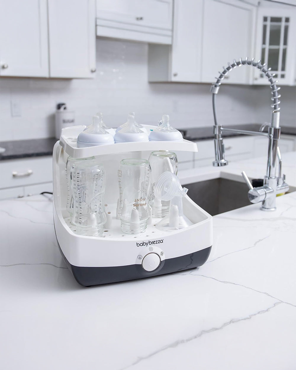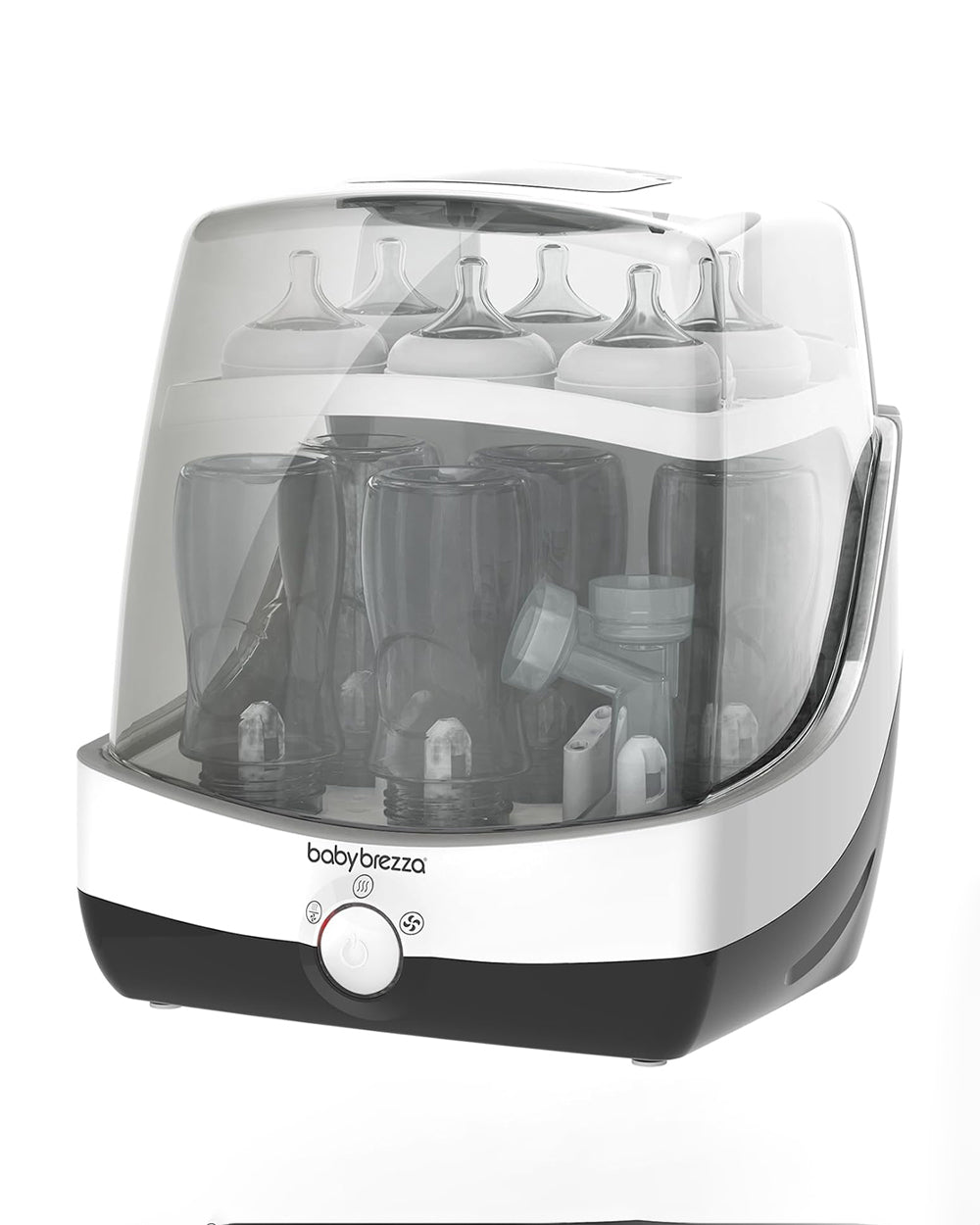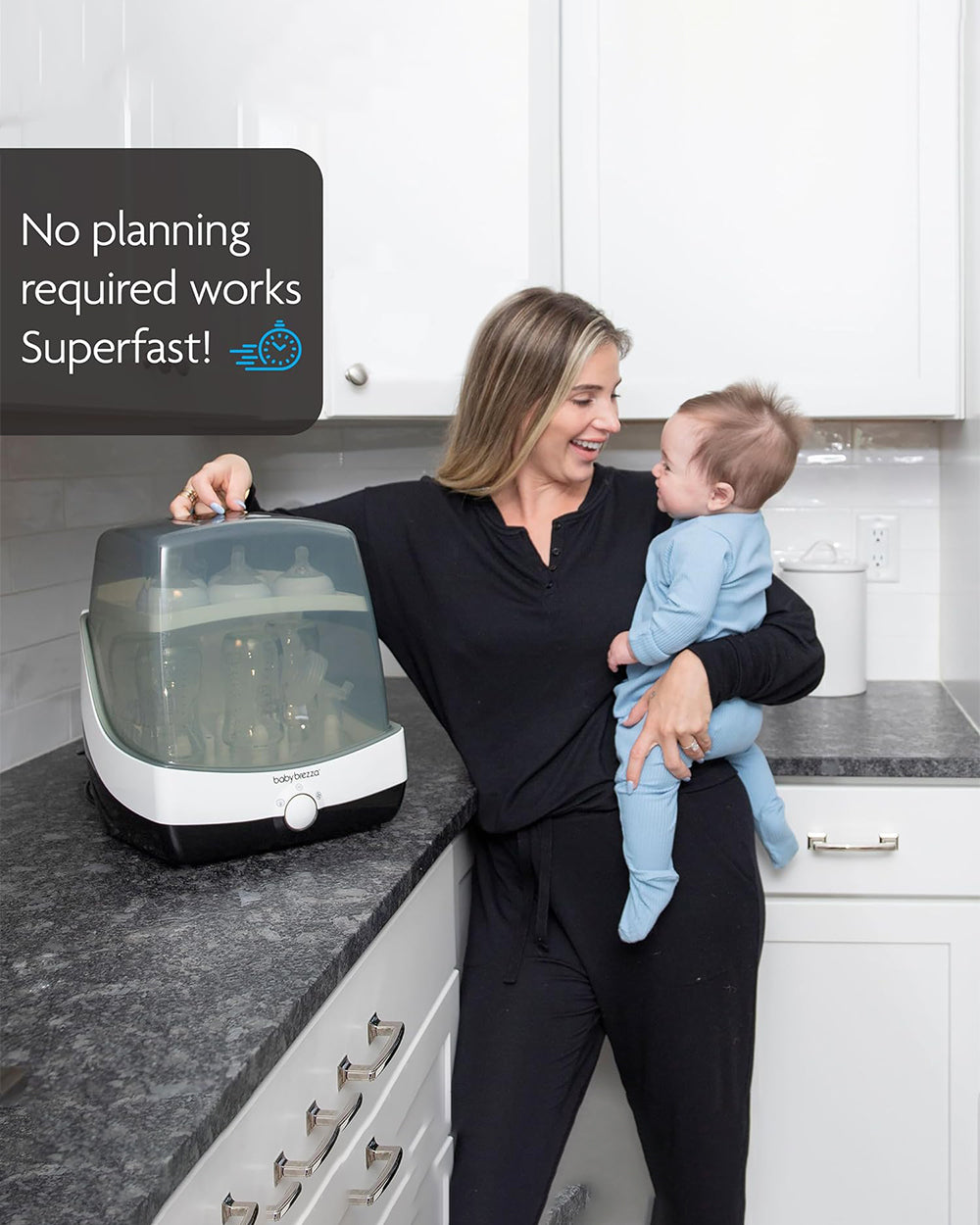 The Baby Brezza SuperFast Baby Bottle Sterilizer and Dryer is designed for busy parents who need quick and efficient bottle cleaning. This cutting edge device sterilizes and dries baby bottles, breast pump parts, and accessories in just 10 minutes, making it the fastest sterilizer dryer in the market. With one-touch operation and powerful steam technology, it eliminates 99.9% of harmful bacteria — no need to wait or plan ahead.