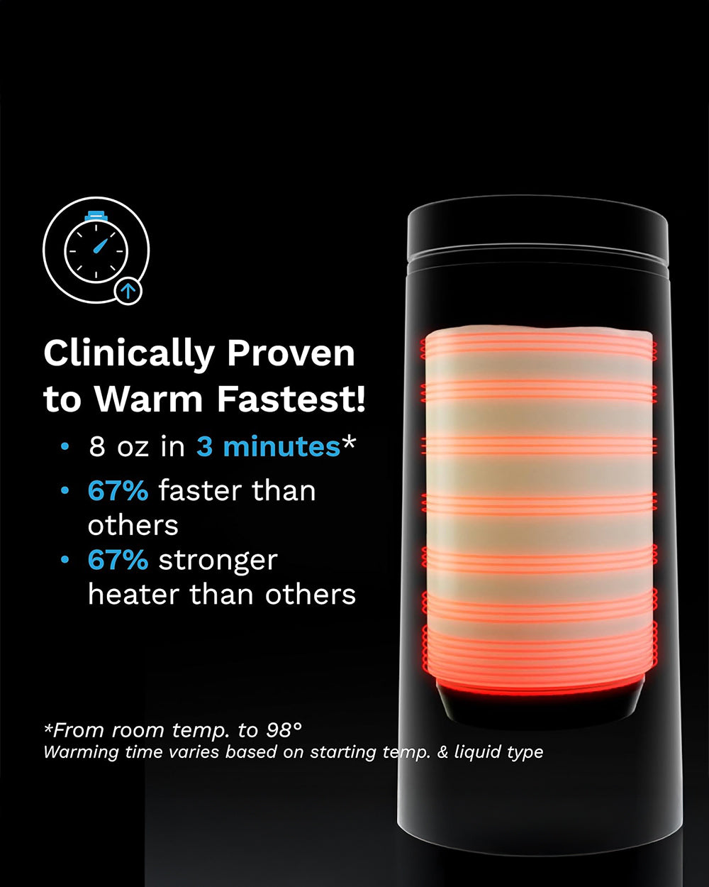 • Simple, Spill-Free Operation: Just add the desired liquid, select the temperature, and the warmer handles the rest. It beeps, auto shuts off after heating, and is designed with a 360° pour spout or easy unscrew lid for effortless feeding—no adapters or upside-down bottles required.