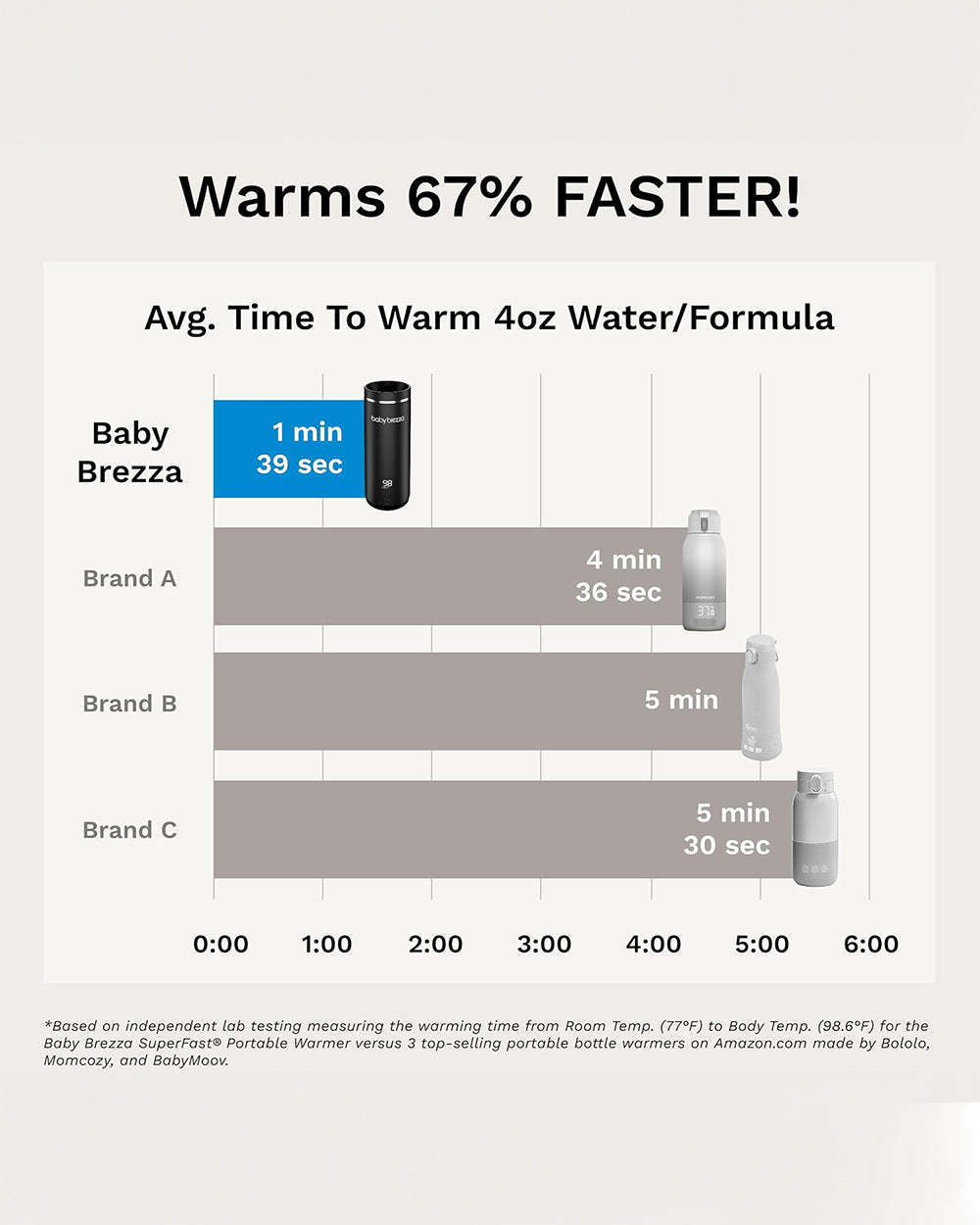 Baby Brezza SuperFast Portable Bottle Warmer - Warms Breastmilk & Formula - Up to 270ml - 67% Faster - Black