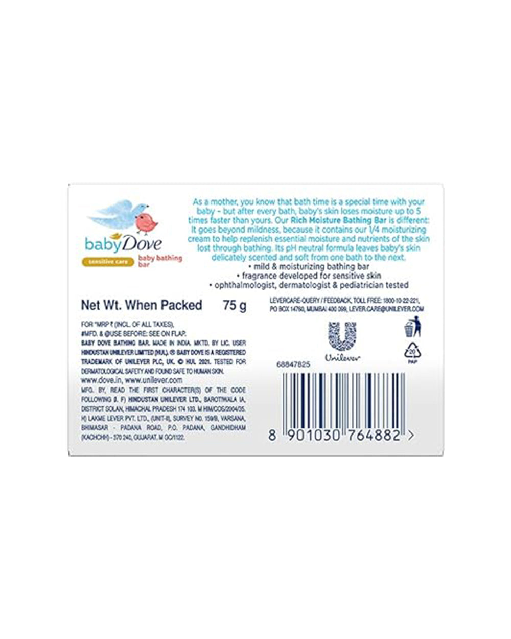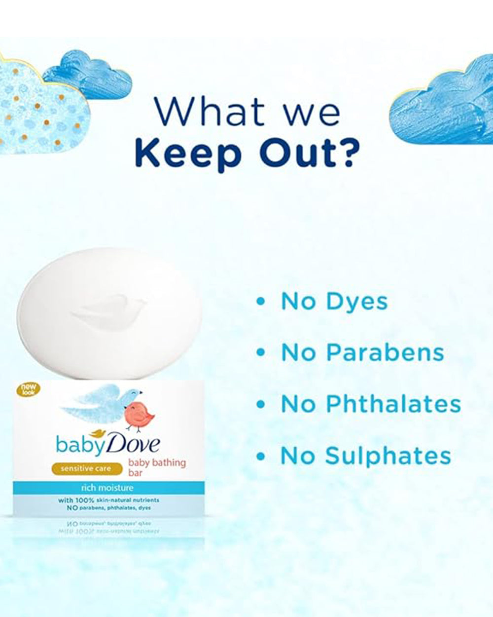 • Hypoallergenic Formula: The hypoallergenic formula of the Baby Dove Baby Bar Rich Moisture is meticulously designed to minimize the risk of allergies.
