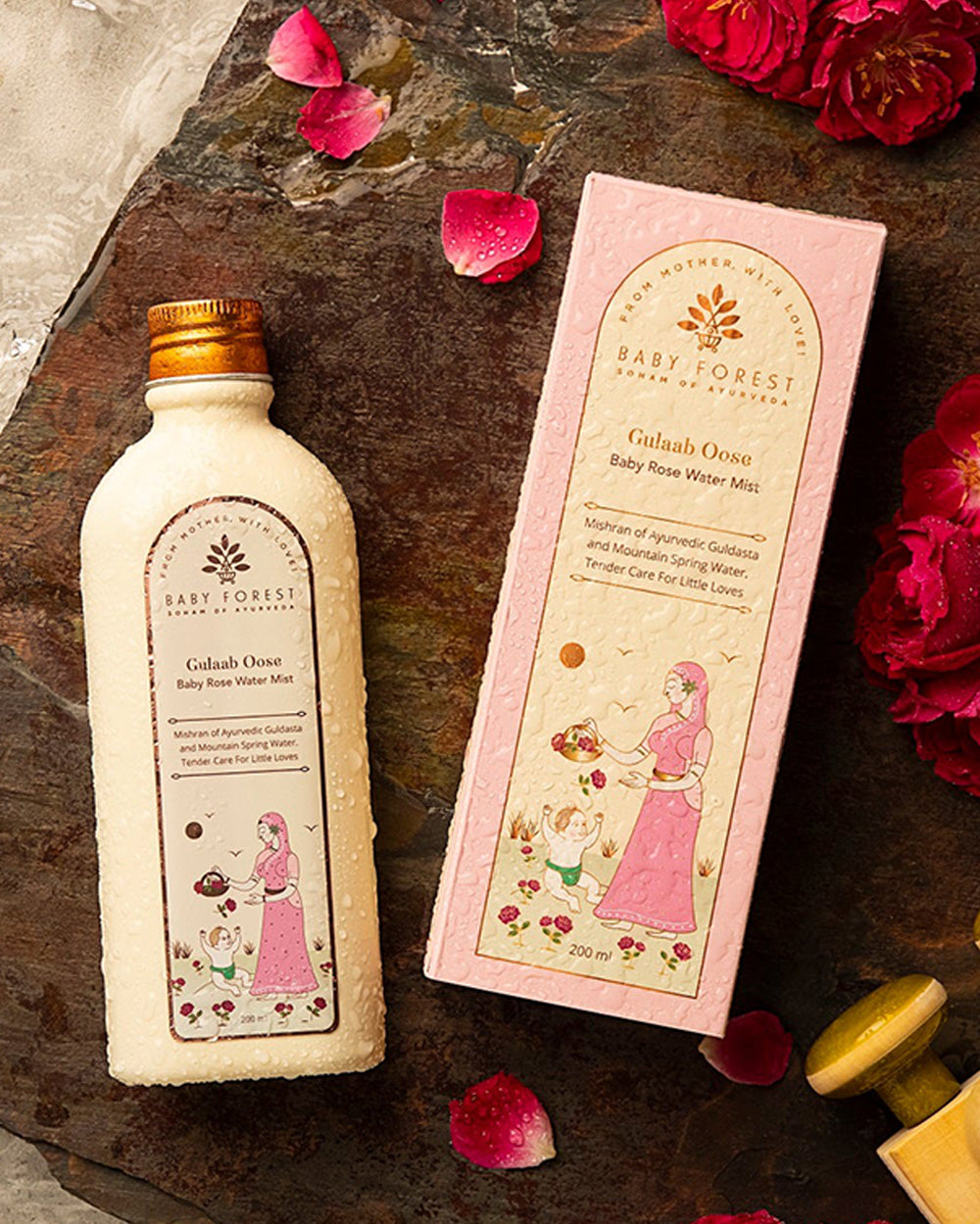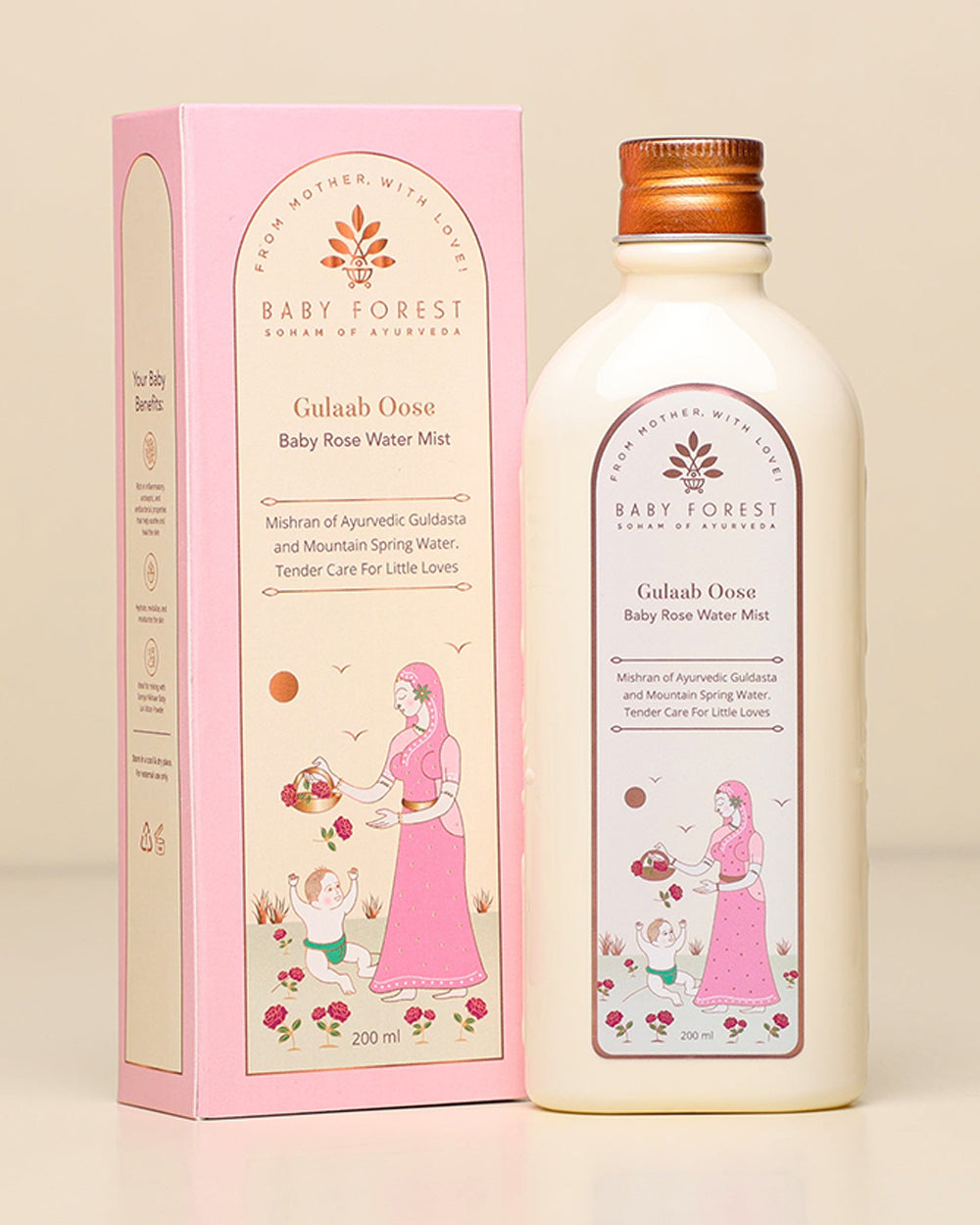 Gulaab Oose Baby Rose Water Mist is a pure and gentle Ayurvedic skincare essential crafted from steam-distilled native rose petals and natural mountain spring water. This luxurious, chemical-free mist calms, refreshes, and hydrates your infant’s delicate skin while leaving behind the soothing fragrance of fresh roses. Safe, natural, cruelty-free, and dermatologically tested—perfect for daily baby care rituals.