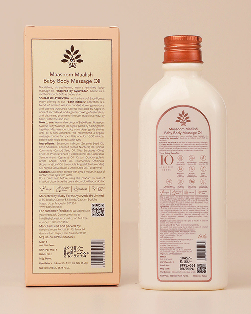• Derma-Safe & Ethical: A vegan, cruelty‑free, no-harsh-chemicals formula inspired by traditional baby massage rituals.