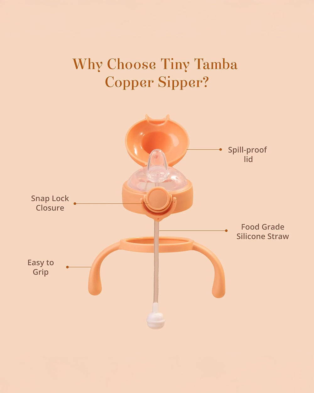 • The Tiny Tamba Copper Sipper offers a safe and natural way to keep your child hydrated.