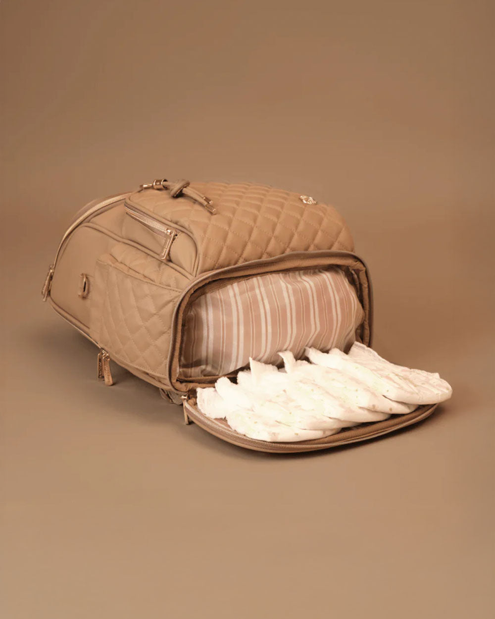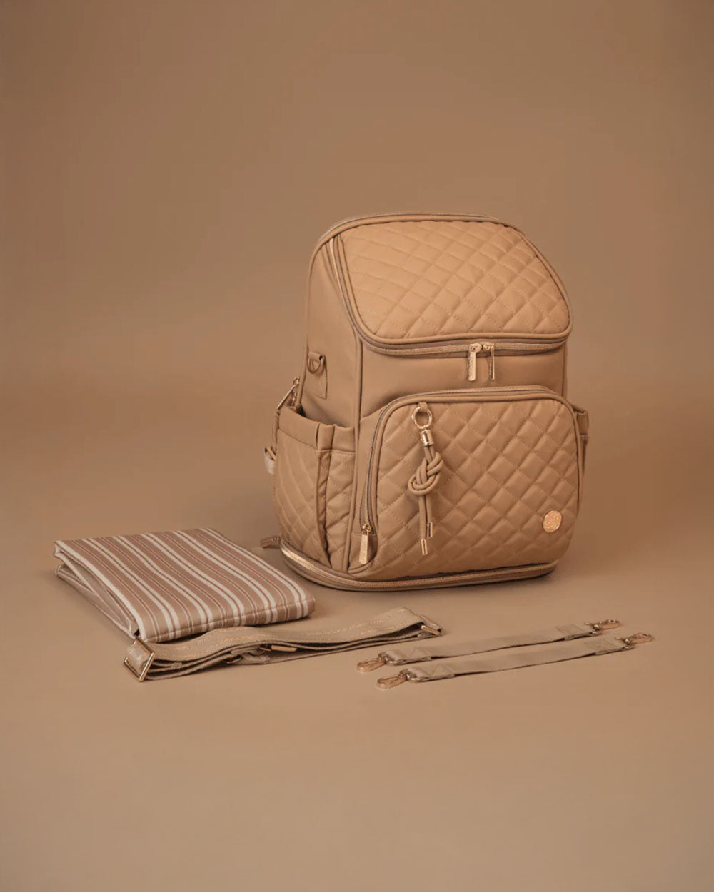 Baby Jalebi The City Trooper Diaper Bag-Backpack-Vegan Leather-Caramel-with Stroller Straps