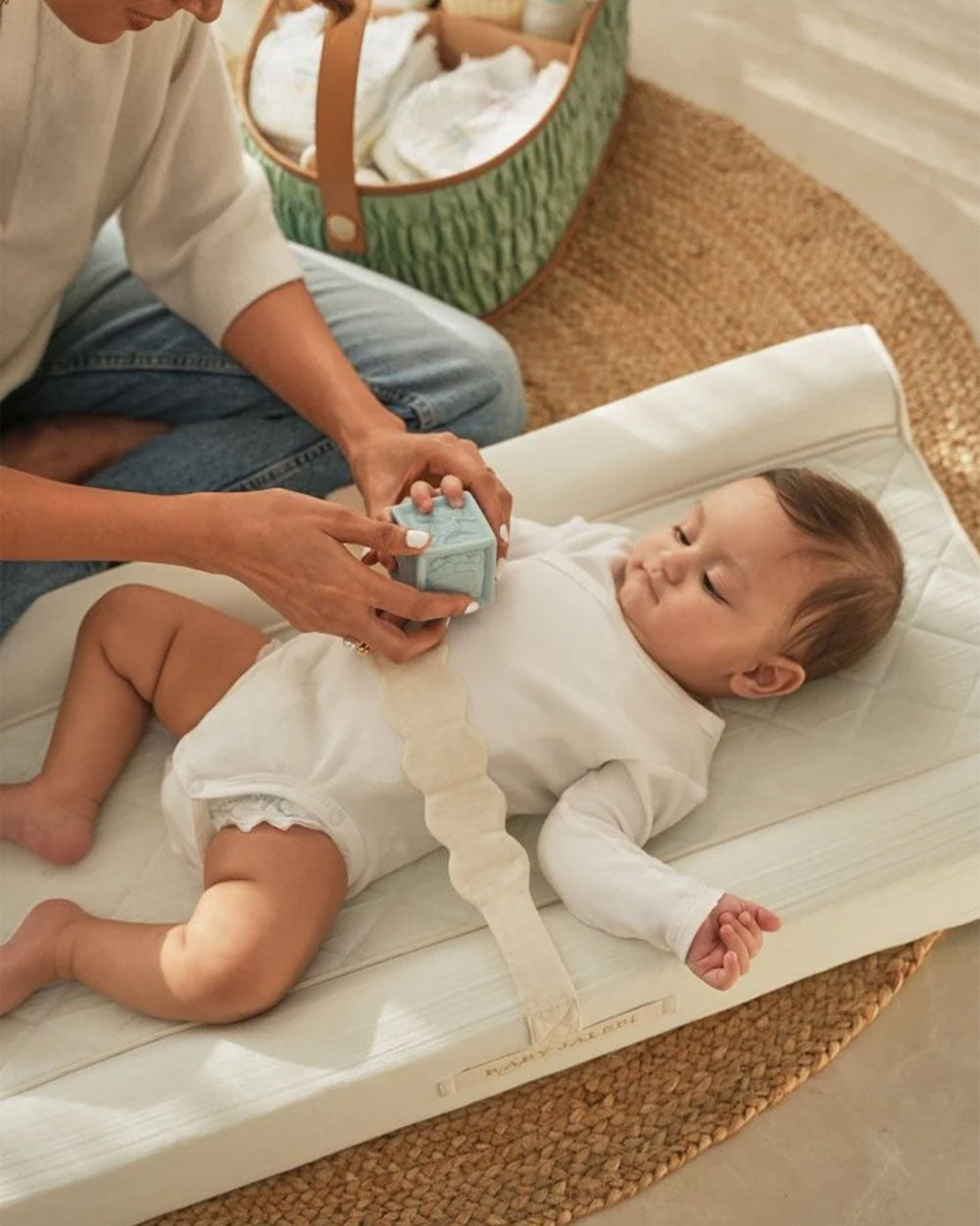 Elevate your diaper-changing routine with the Changing Station by Baby Jalebi. Crafted for comfort, safety, and style, it provides a plush, secure surface for your little one. With its quilted padding, organic muslin cover, and waterproof foam insert, it ensures a hygienic and cozy changing experience. The raised edges and soft safety strap add extra security, while the lightweight, portable design makes it perfect for both home and travel. Finished with Baby Jalebi’s signature tassel and logo embroidery, it’s a chic and functional nursery essential.
