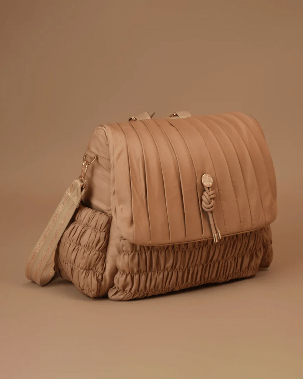 Discover elegance and practicality with the Dune Diaper Bag - by Baby Jalebi. Crafted with inspiration from serene desert landscapes, this quilted diaper bag blends refined style with thoughtful functionality. Made from 100% recycled, abrasion-proof, water-resistant polyester, it keeps essentials organized while standing up to the demands of parenthood. With multiple compartments, versatile carry options, and a plush changing mat included, Dune is designed to be your chic, go-anywhere companion.