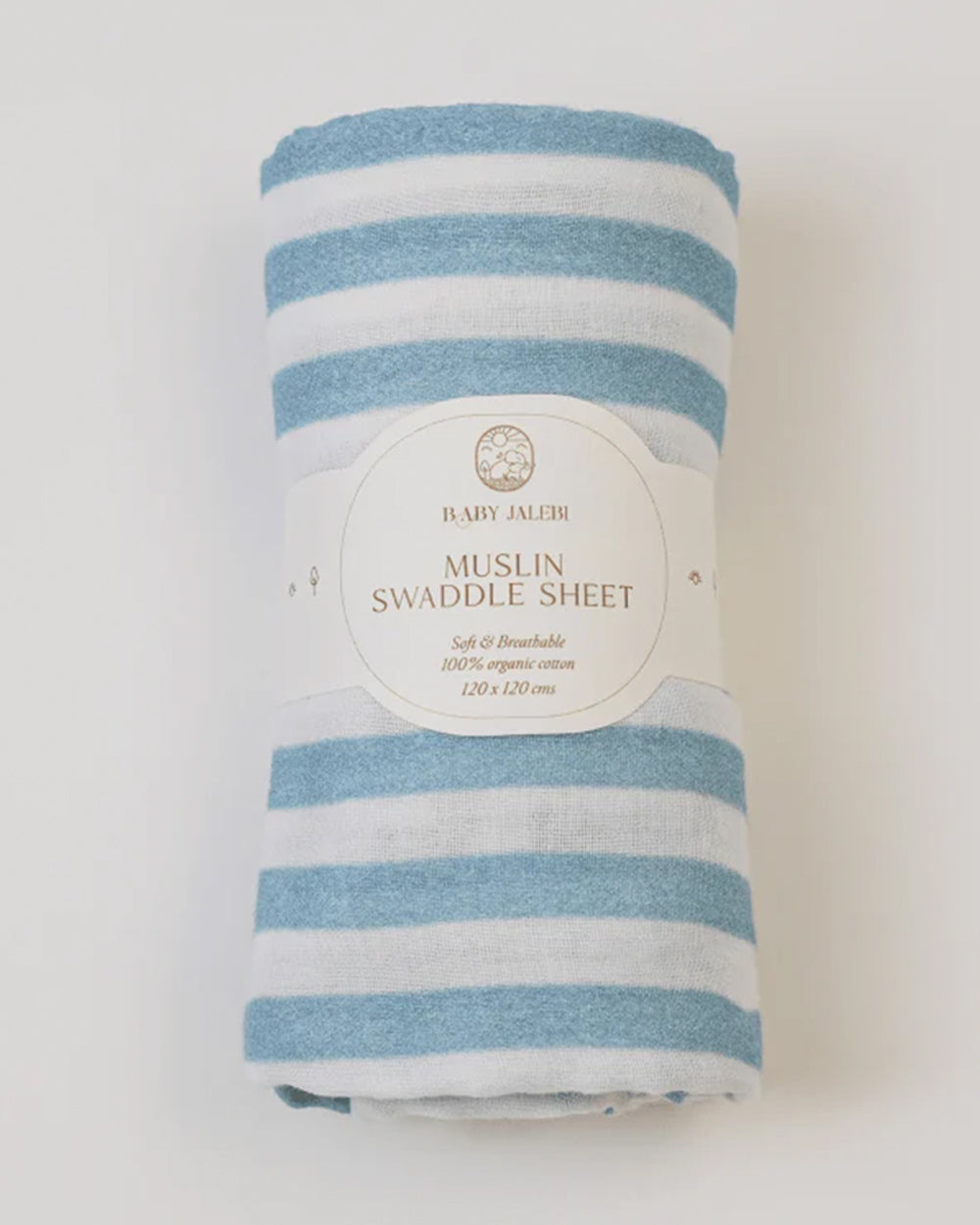Baby Jalebi Organic Muslin Swaddle-Roadster-Blue & White-Pack of 2-Infant Wraps