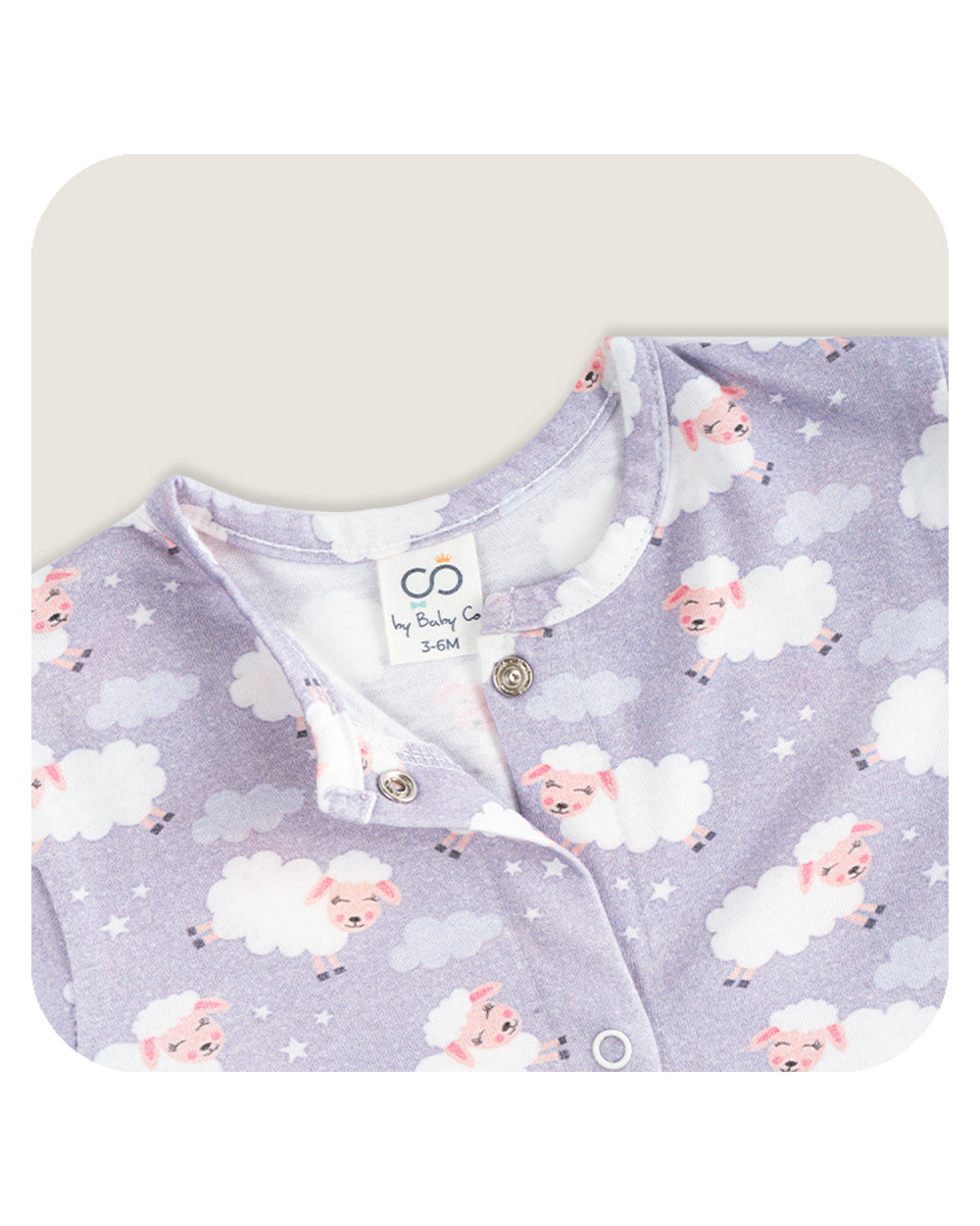 BabyCo Organics Purple & White Nightsuit-Ba Ba-Organic Cotton-For Infants