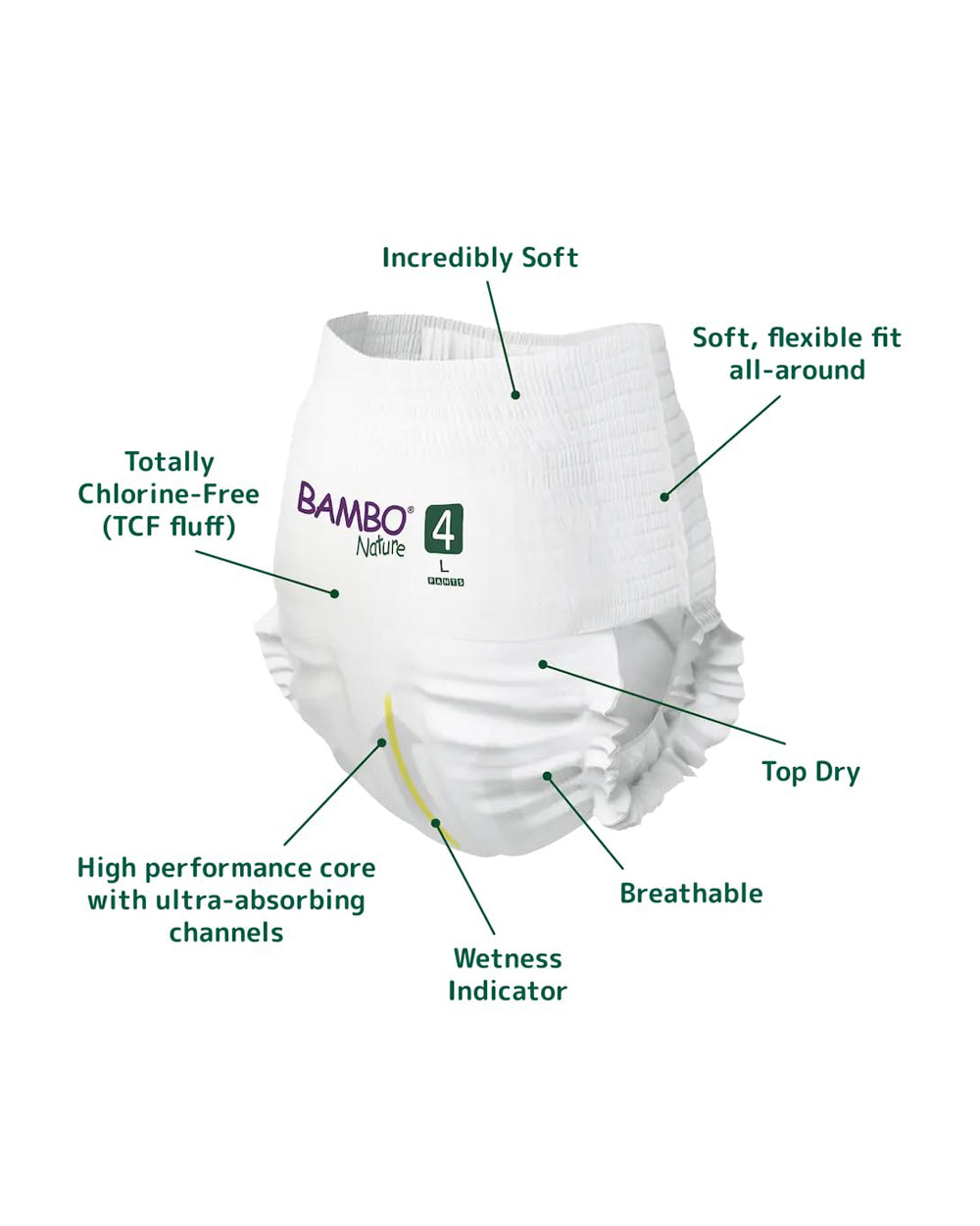 Bambo Nature Diaper Pants-Size 4, Large (7-12 Kg)-Chlorine Free-With Wetness Indicator-Dermatologically Tested