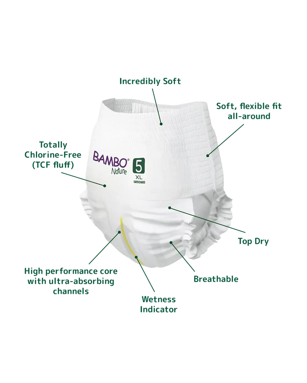Bambo Nature Diaper Pants-Size 5, XL (11-17 Kg)-Chlorine Free-With Wetness Indicator-Dermatologically Tested