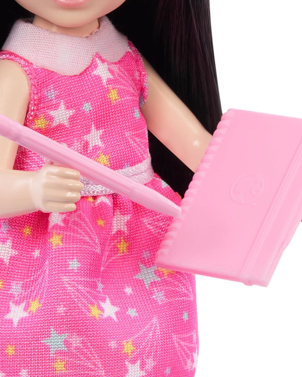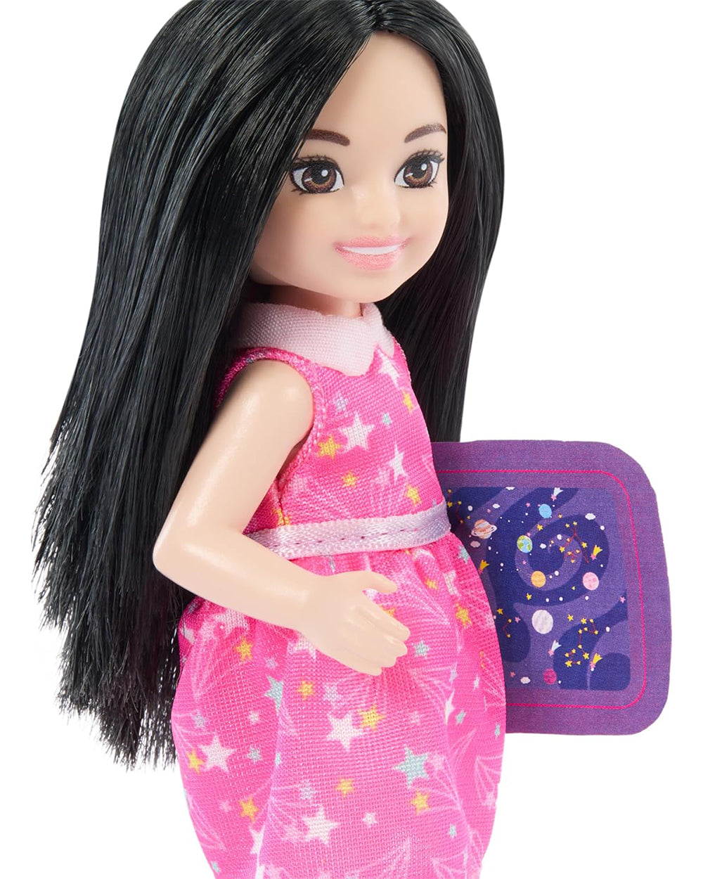 • Astronomer Role: Chelsea Can Be… Astronomer doll is ready to explore the universe, dressed in a removable star print dress and white sneakers, with her long, straight black hair.