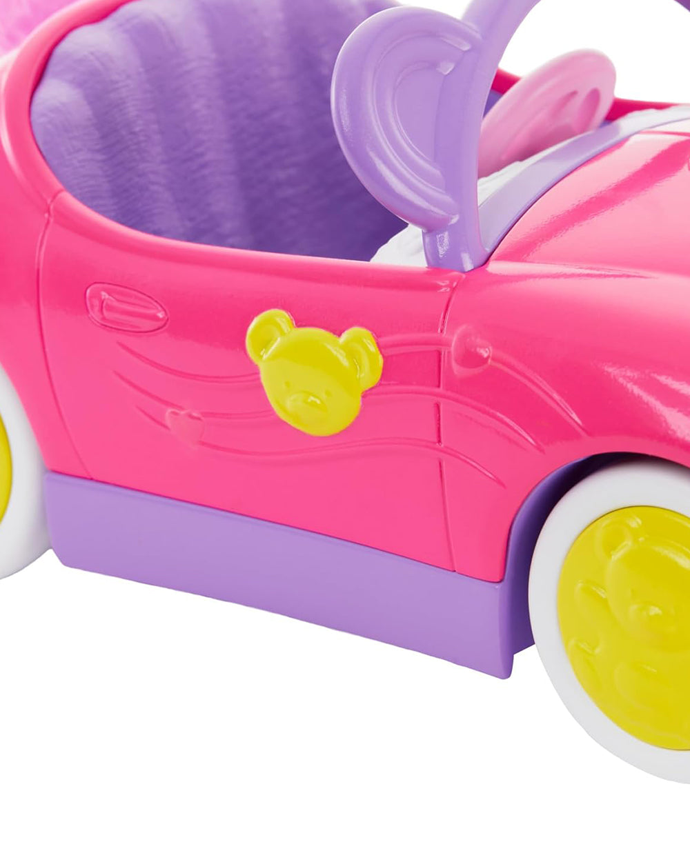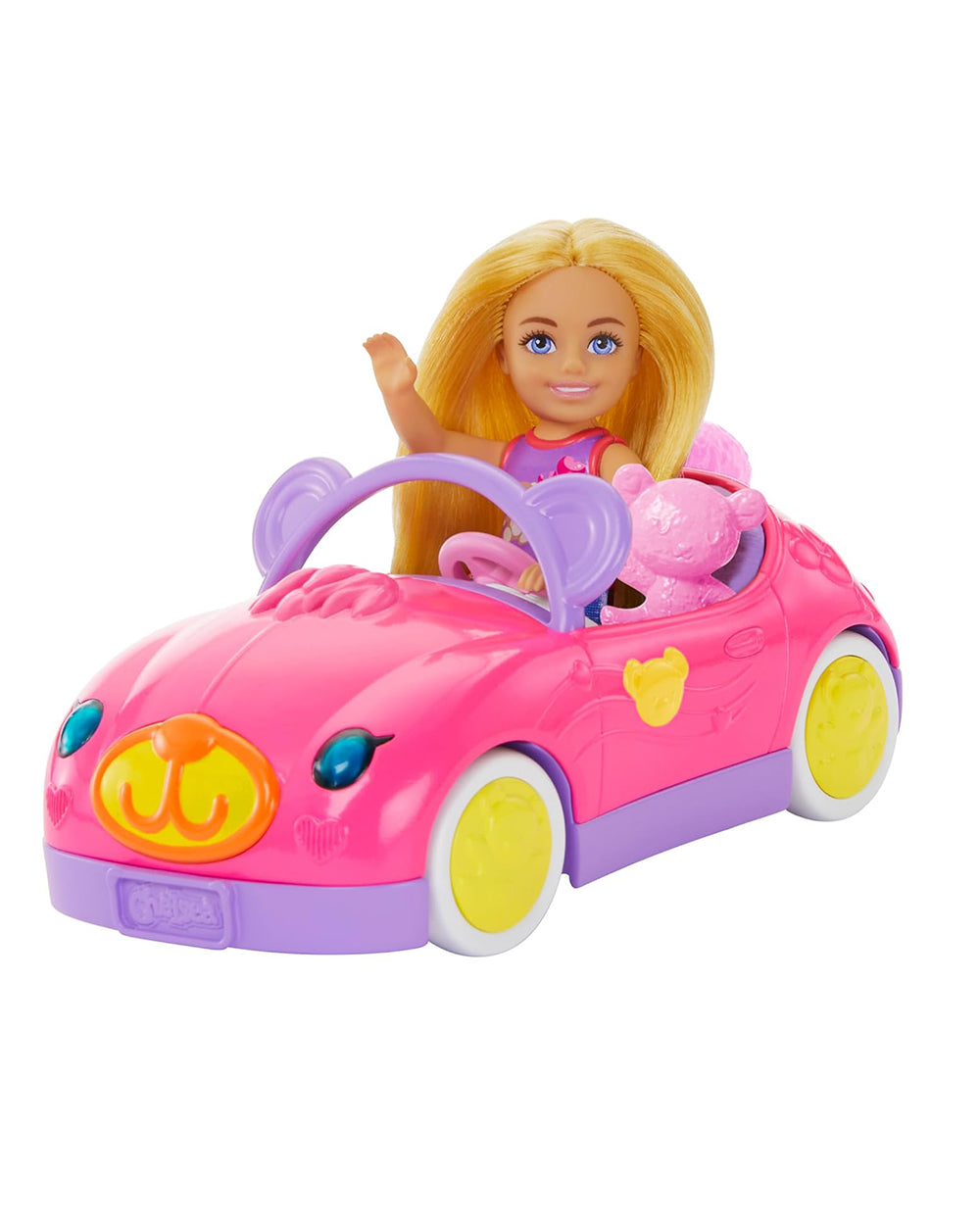 Hit the road with Barbie Chelsea and her best friend! This adorable playset features a colourful teddy bear-themed convertible with rolling wheels.The car is big enough for both Chelsea and her teddy bear to enjoy the ride together. Chelsea doll is dressed in a cute outfit perfect for a road trip adventure. With this fun playset, kids can create endless imaginative stories.