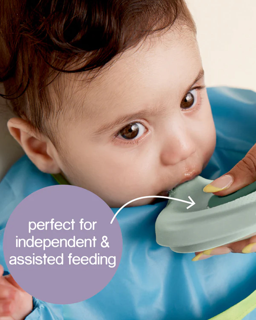 • Ergonomically Shaped: Designed for small hands to hold and squeeze, allowing little ones to intuitively sip from the silicone spout tip or use with a silicone spoon for parent-led feeding.