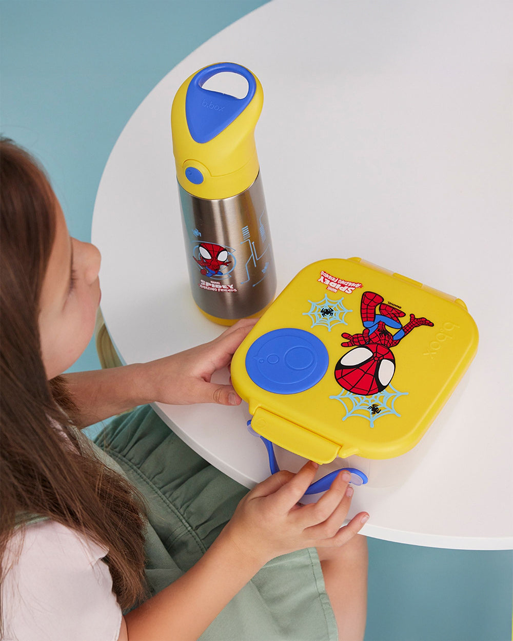 Get ready to swing into snack time with the b.box Mini Lunchbox - Spidey edition. Designed for smaller appetites and superhero-sized fun, this 1L lunchbox features two leakproof compartments and a flexible fruit holder to keep whole fruits secure and fresh. With a removable divider for customizable space, an easy-carry handle, and a kid-friendly clip, it's perfect for school, daycare, or outings. Made from safe, durable PP and silicone and decorated with bold Spidey graphics, it's the ultimate sidekick for every little Marvel fan.