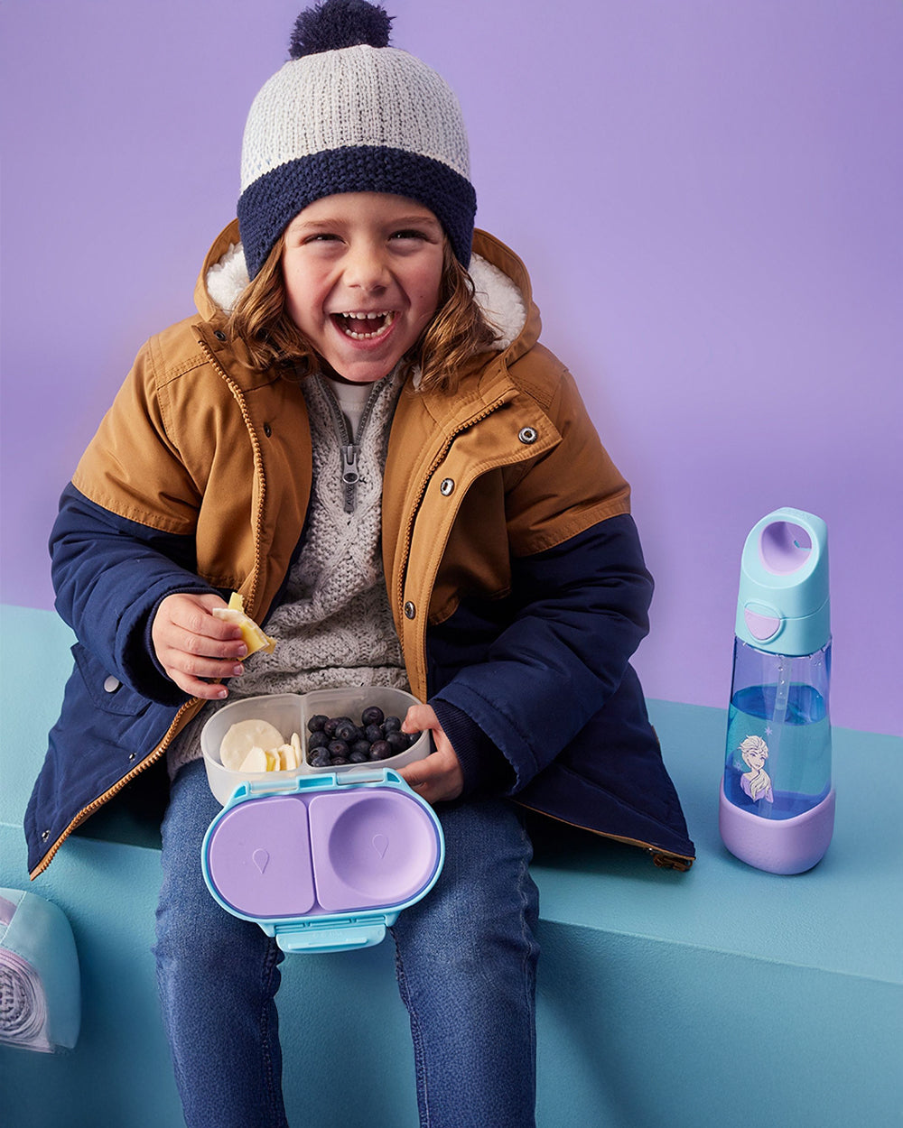 Collect magical moments on-the-go with the Disney Frozen Leakproof Snackbox by b.box. Designed for smaller portions and little hands, this compact snackbox features two leakproof compartments for wet or dry foods and a flexible fruit holder that keeps whole fruits secure and fresh. With Olaf sparkling on the lid in a fun glitter print, removable seals for easy cleaning, and a kid-friendly clip, snack time becomes a joyful Frozen-themed adventure wherever you are.
