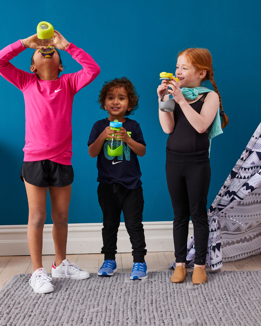 Ideal for active kids on the move, the sports spout bottle delivers effortless hydration with its easy-flow silicone spout and ergonomic triangular design. The push-button flip-top lid makes it simple to open, while keeping the spout clean and leak-proof when closed. Made from lightweight Tritan™, it’s built for durability and features a removable bumper for extra protection. A flexible carry handle and minimal parts make it both kid-friendly and parent-approved.