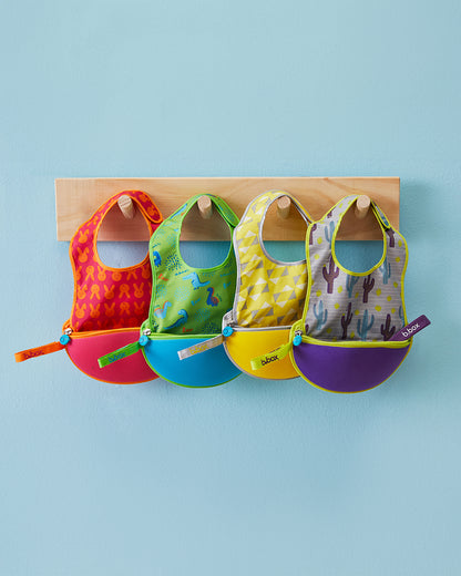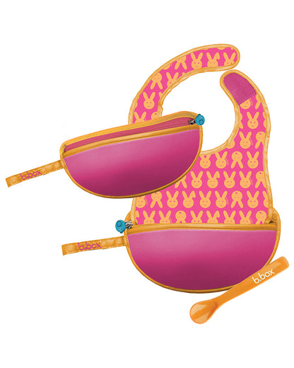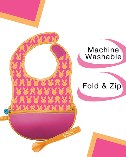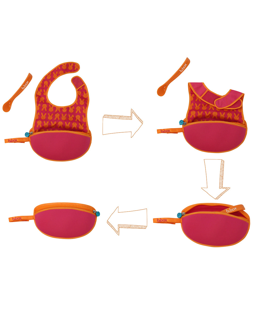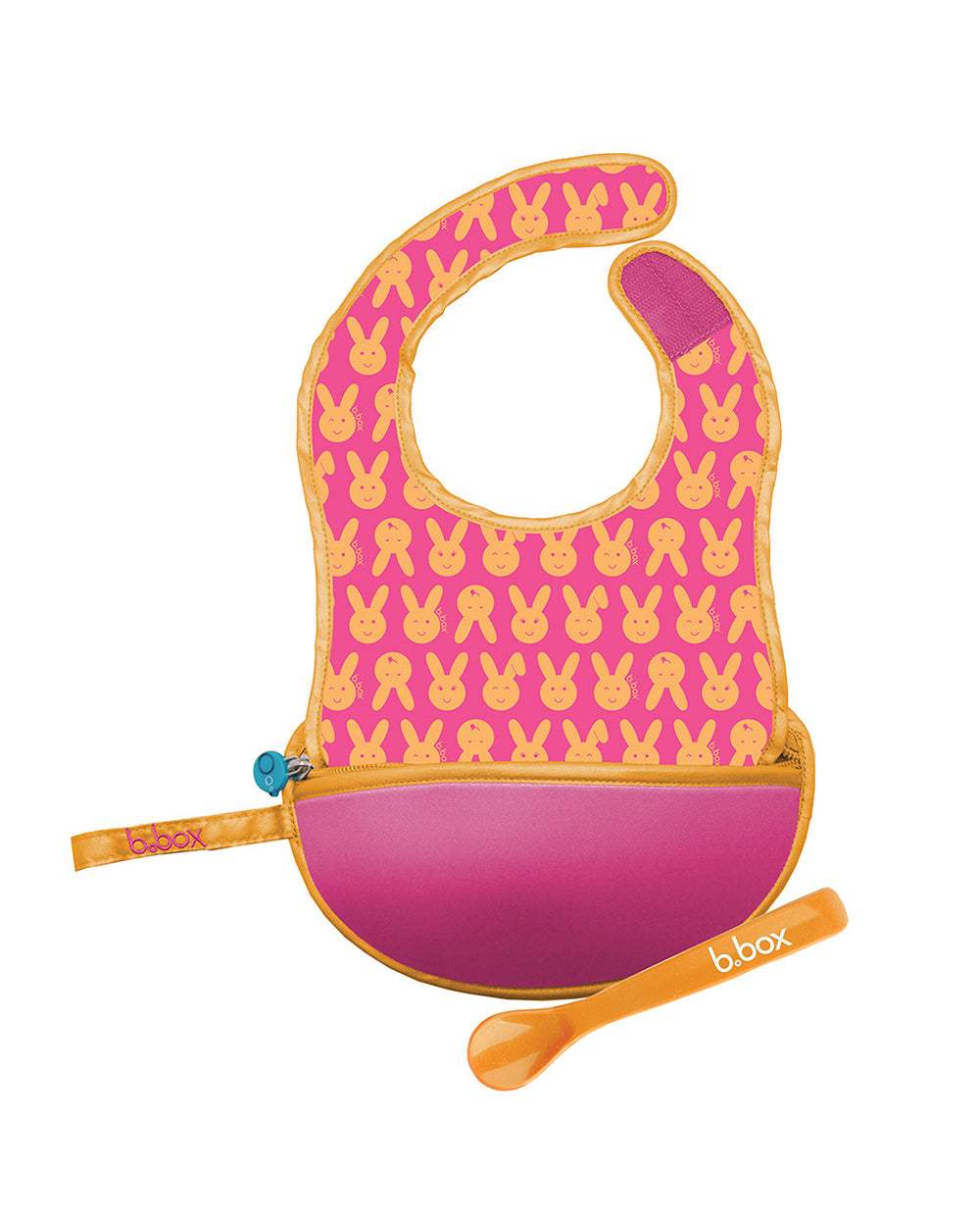 b.box Waterproof Travel Bib-Food Catcher Pocket-With Spoon-Hip Hop Pink Orange-For Infants