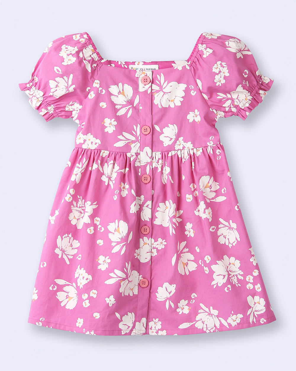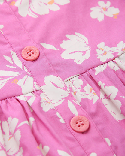 Beebay Fuchsia Pink Frock Dress-Floral-Cotton-For Infants