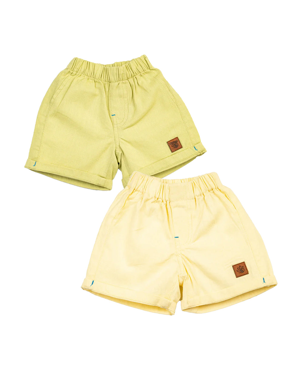 Beelittle Mustard & Yellow Shorts-Solid-Cotton-Pack Of 2-For Infants