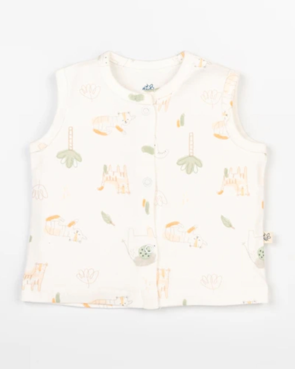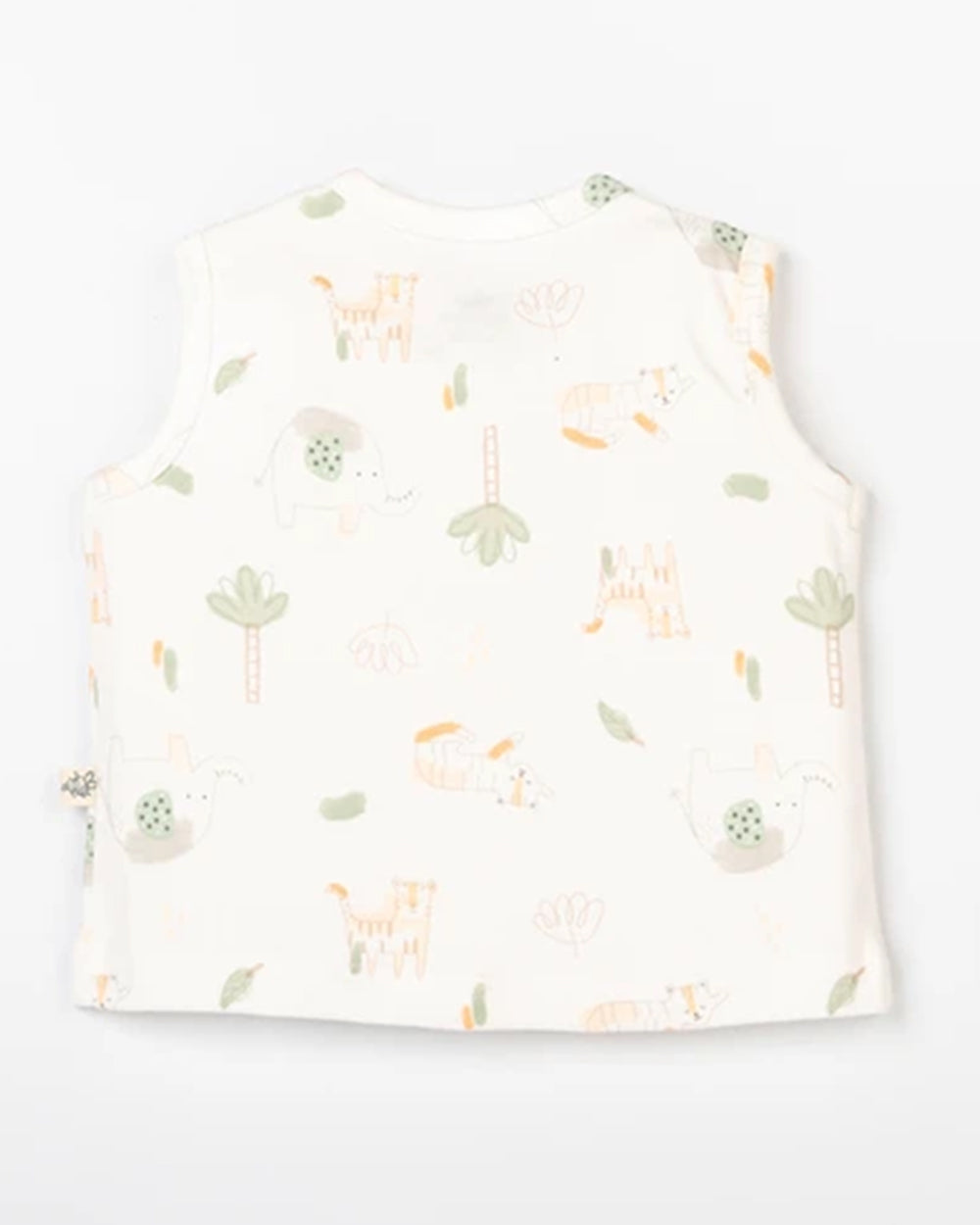 Beelittle Sage Green & Cream Jhablas-Cotton-Ele & Cat-Pack of 2-For Infants