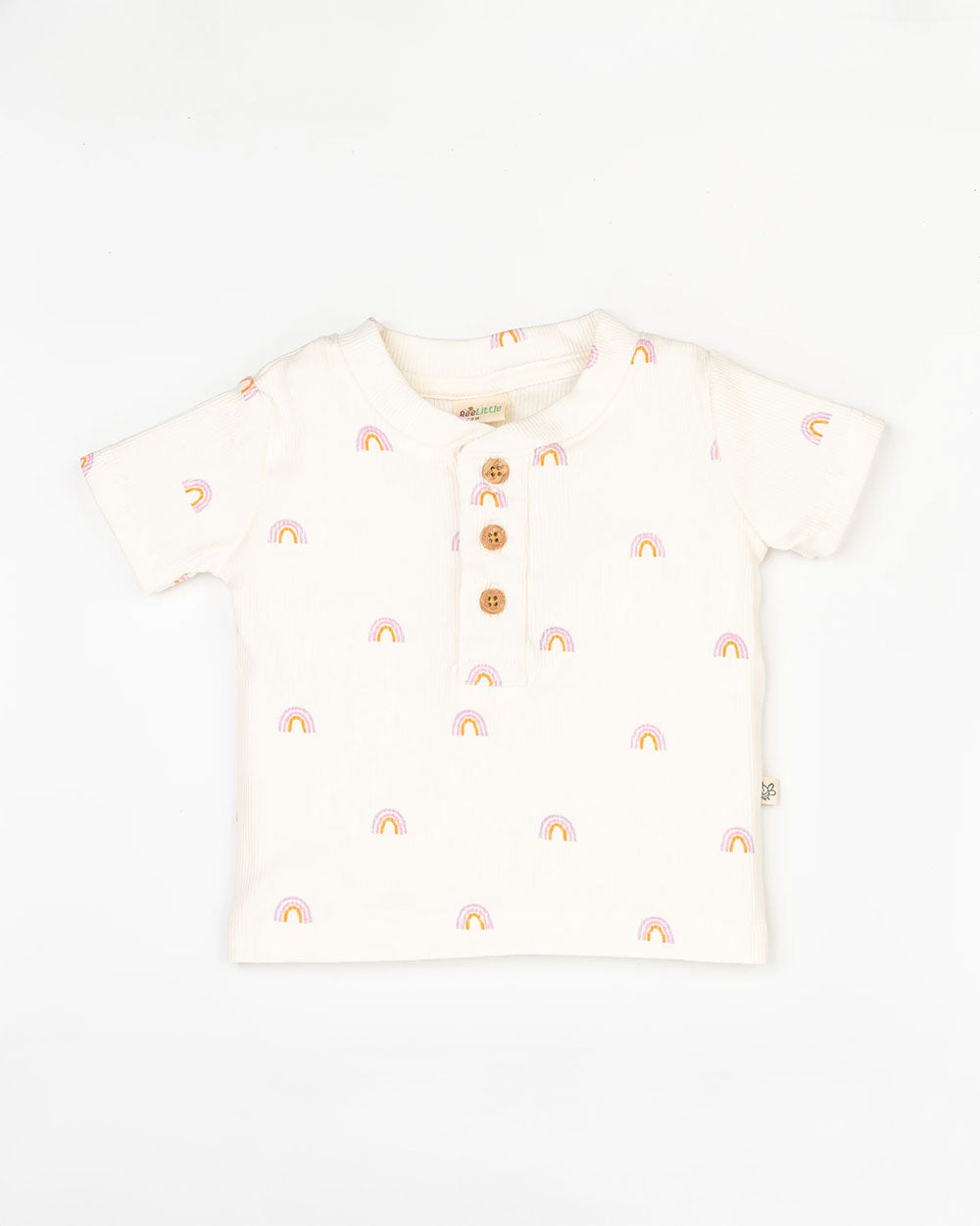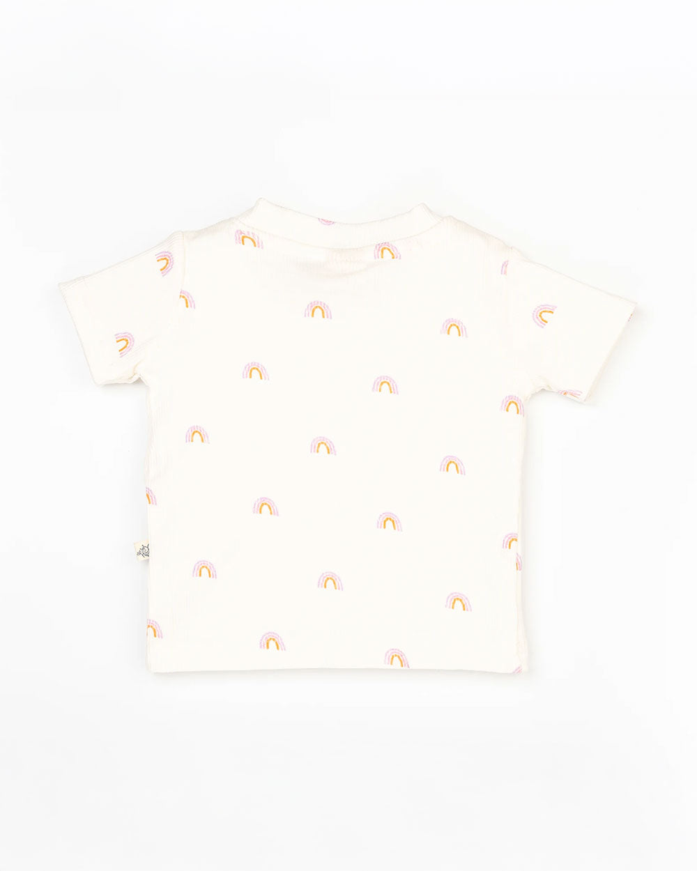 Beelittle White & Orange Top & Shorts Set-Rainbow-Cotton-For Infants