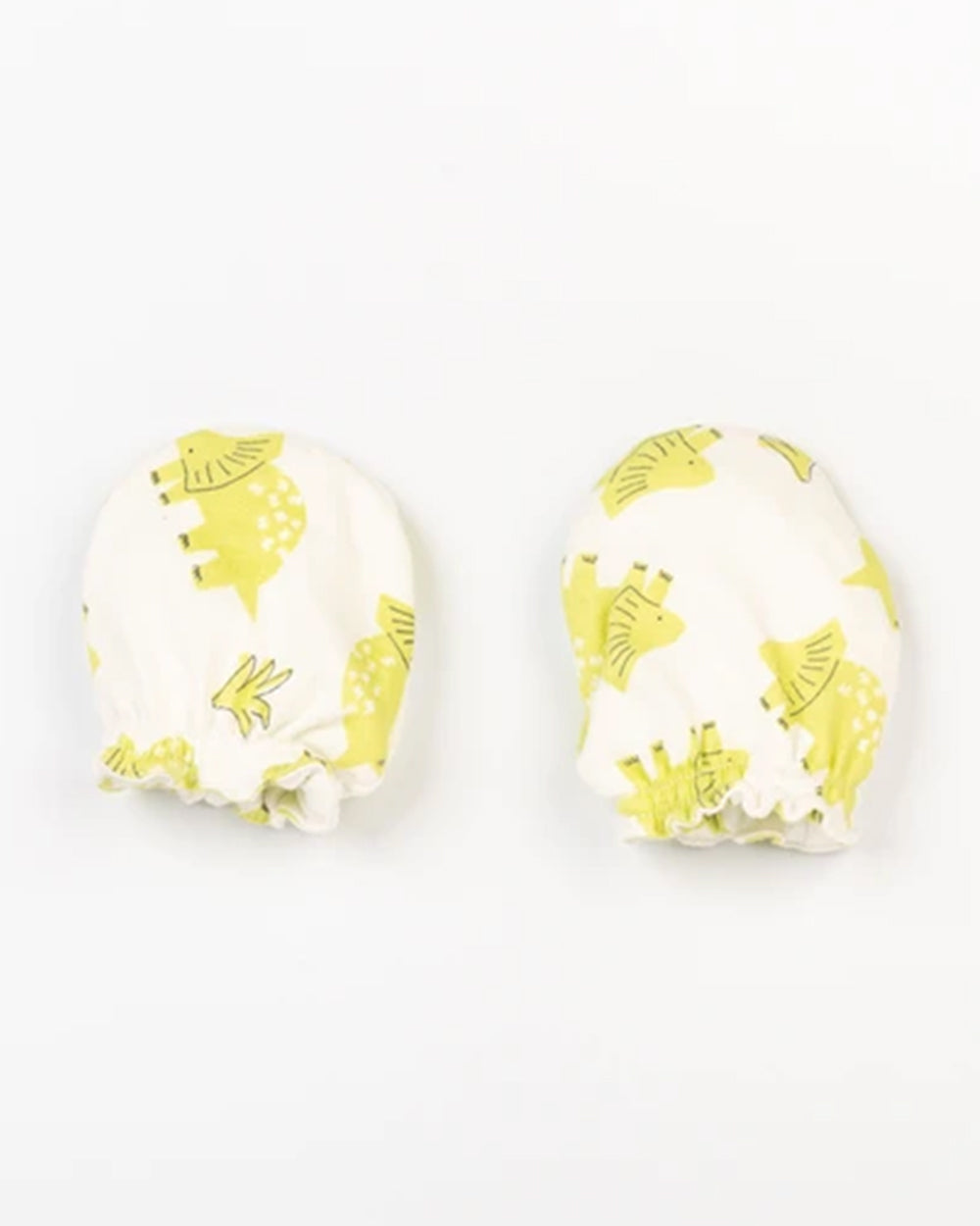 Beelittle White Caps, Booties & Mittens Set-Cotton-Green Toro-For Infants
