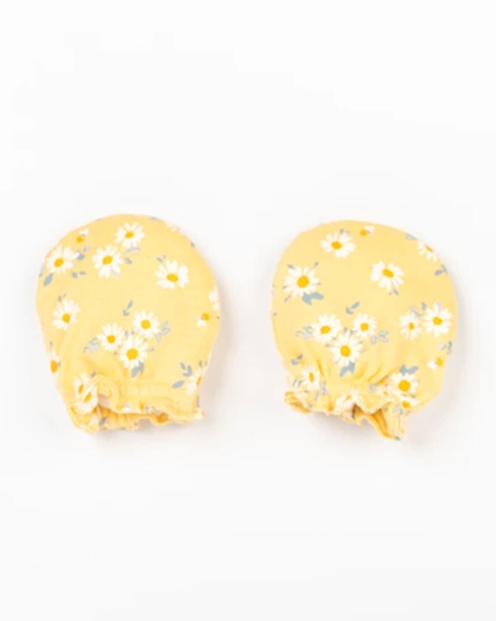 Beelittle Yellow Caps, Booties & Mittens Set-Cotton-Gypsy Flowers-For Infants