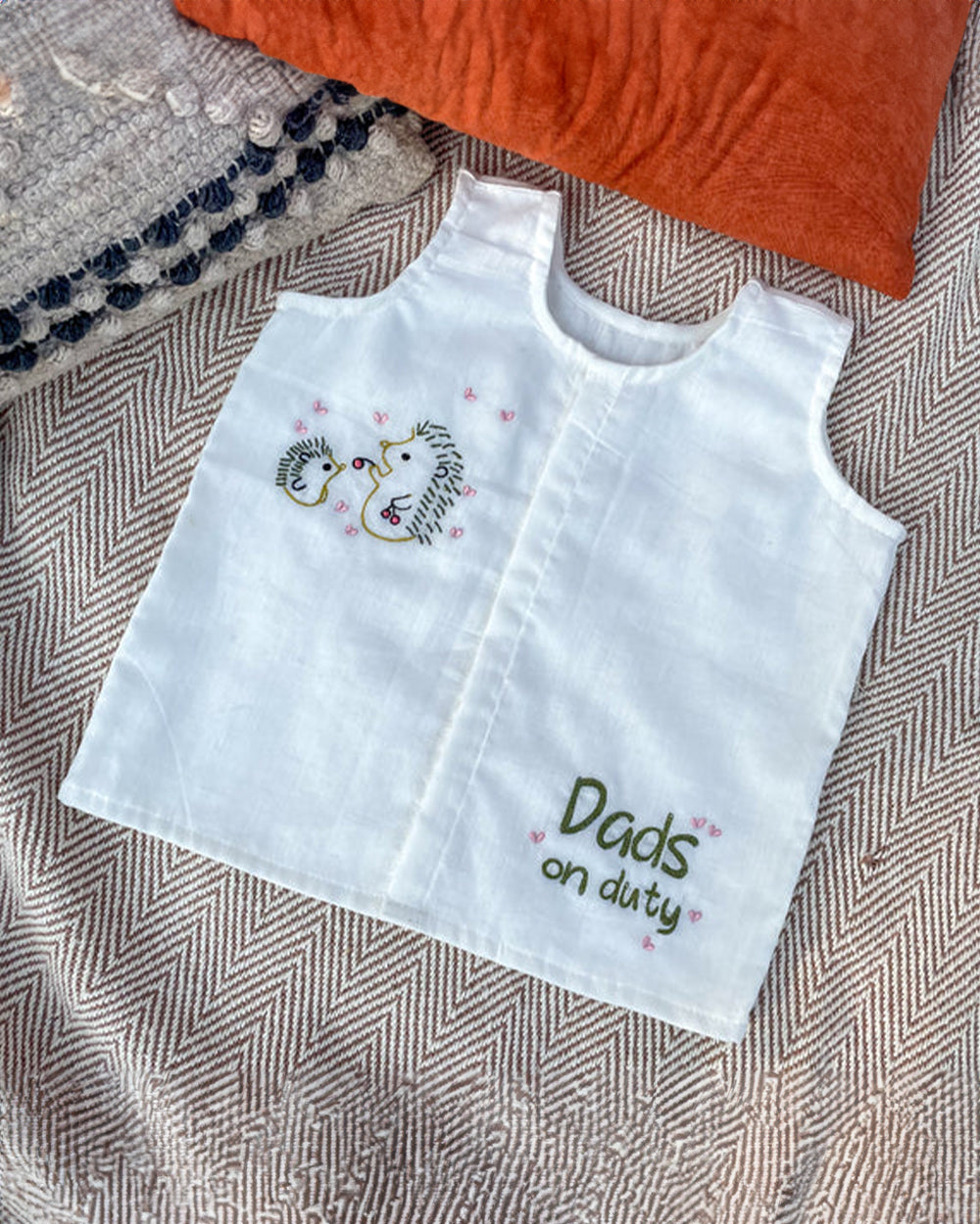 Bhaakur White Hedgehog Top & Shorts Set-100% GOTS Certified Cotton-Sleeveless-For Infants
