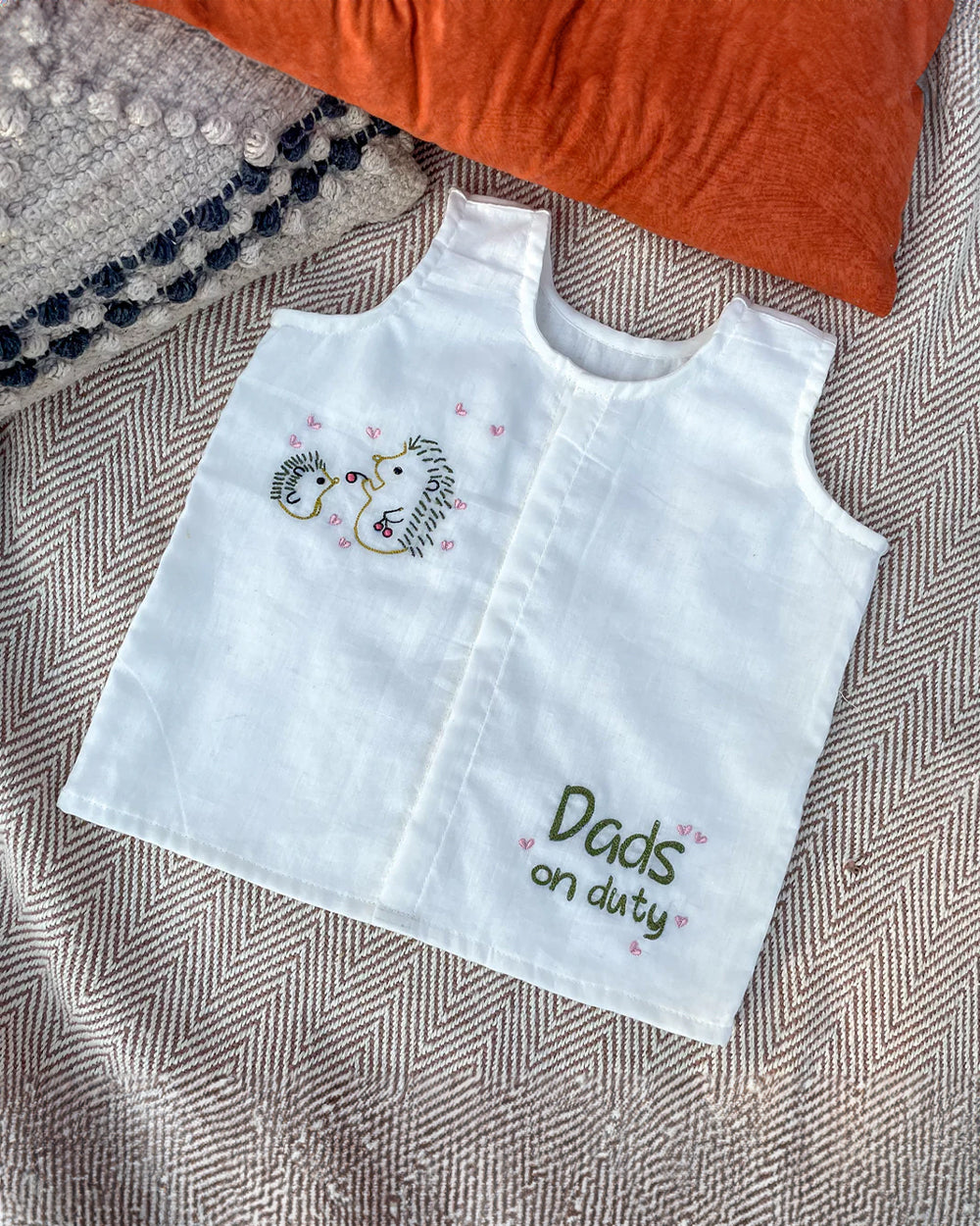 Bhaakur White Printed Jhablas-100% GOTS Certified Cotton-Sleeveless-Pack of 5-For Infants