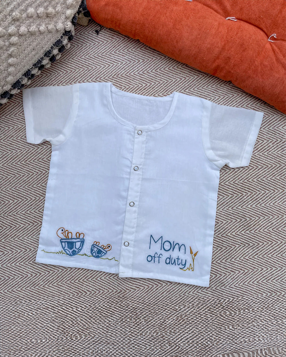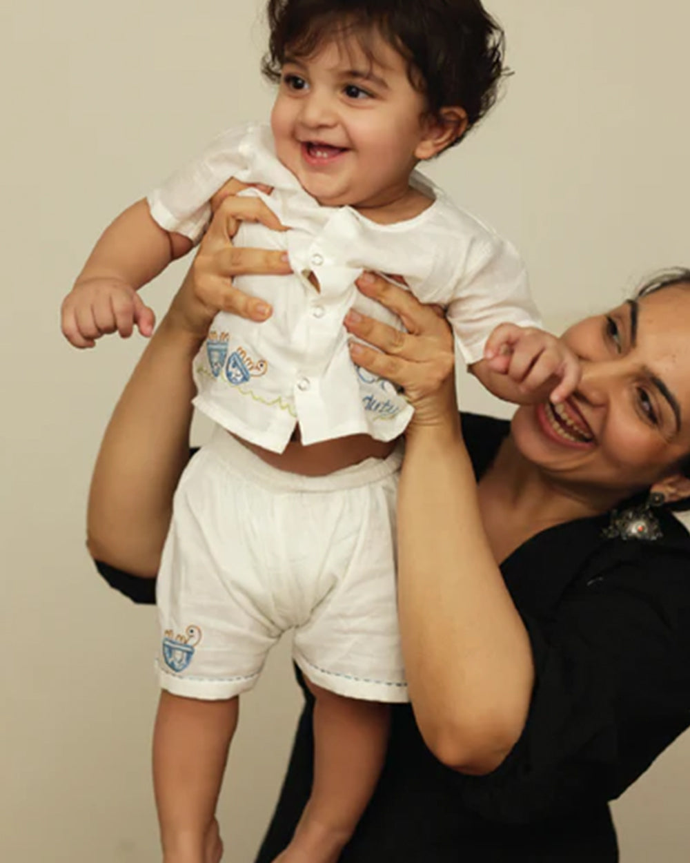 Bhaakur White Turtle Top & Shorts Set-100% GOTS Certified Cotton-Short Sleeves-For Infants