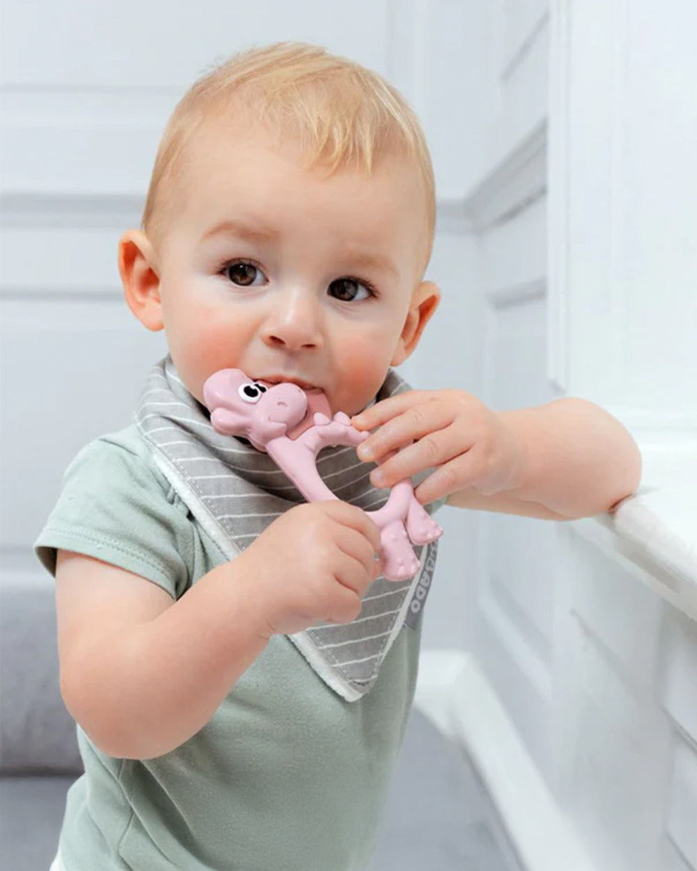 Dotty the Dinosaur is a Multi-Sensory Teether designed to enhance your baby's teething and weaning experience. Created by Bibado, in collaboration with teething and weaning experts Dotty is not just a teether. She’s a friendly companion that helps babies develop essential mouth muscles while exploring the joys of biting and chewing.
